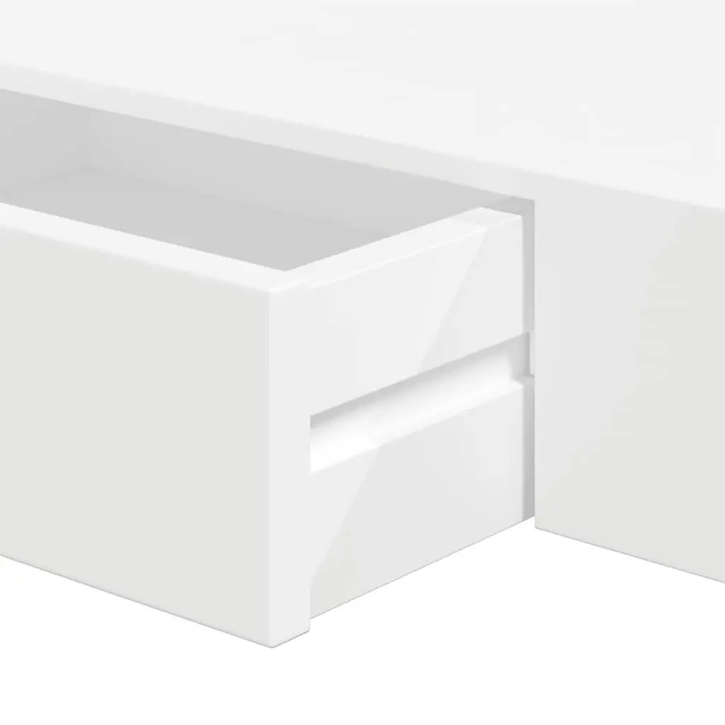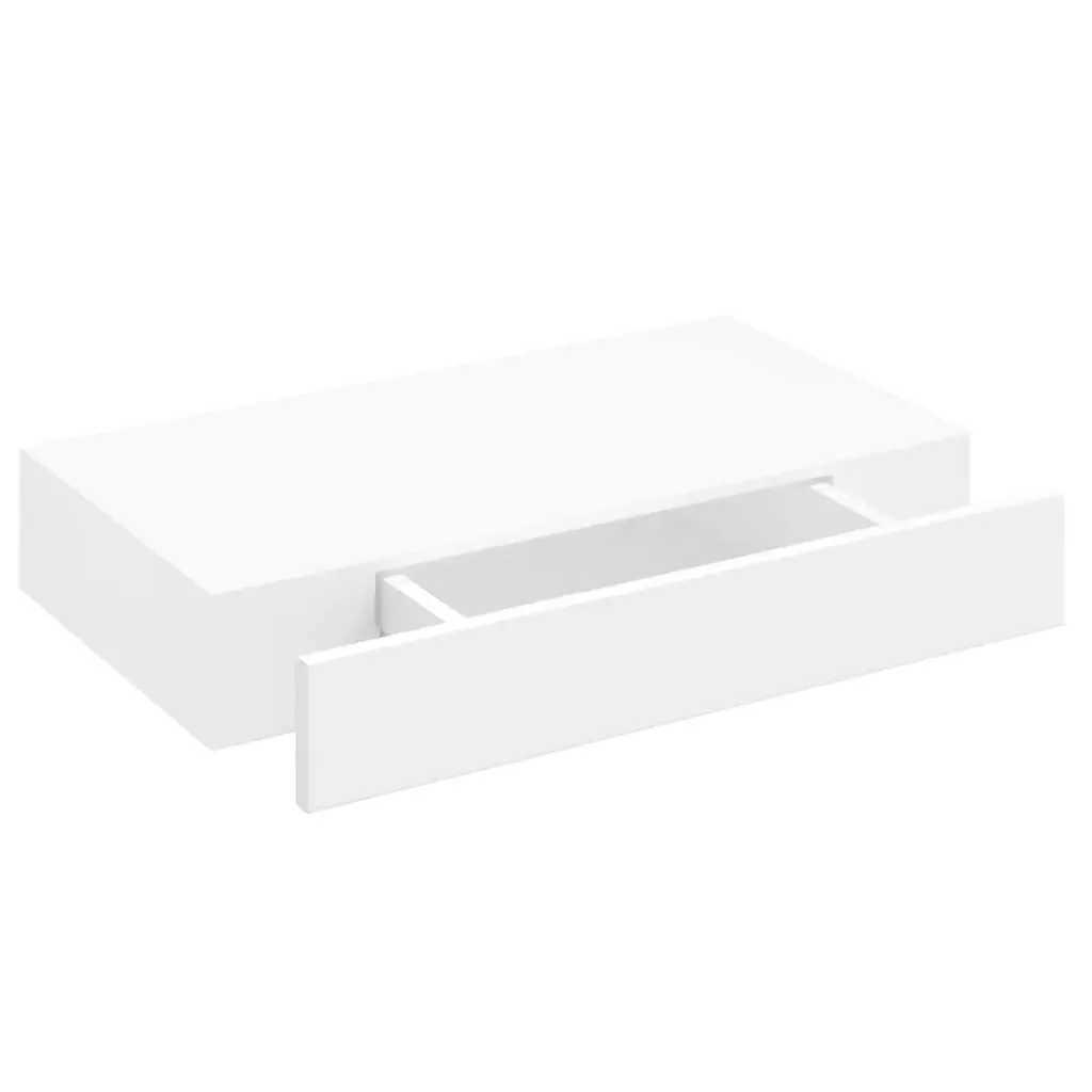 This set of white floating wall shelves mixes modern looks with smart design, making it a fab addition to any living room or bedroom. Made from tough MDF, these shelves provide a minimalist way to show off decor, books, or cherished collectibles, transforming your wall into a stylish display area. Invisible Mounting: The unique hidden mounting system lets the shelves look as if they float on the wall, giving your space a sleek, unobtrusive vibe.Versatile Storage: With built-in drawers, these shelves keep your stuff tidy while also adding a stylish touch to your decor.Durable Material: Made from high-quality MDF, these shelves are built to last, safely holding your favorite items without losing style.Perfect for Display: Great for showcasing books, collectibles, or decorative bits, these shelves let you add your personal flair while keeping it clean and stylish.Modern Styling: With a matte white finish and minimalist design, these shelves fit in with lots of different decor styles.