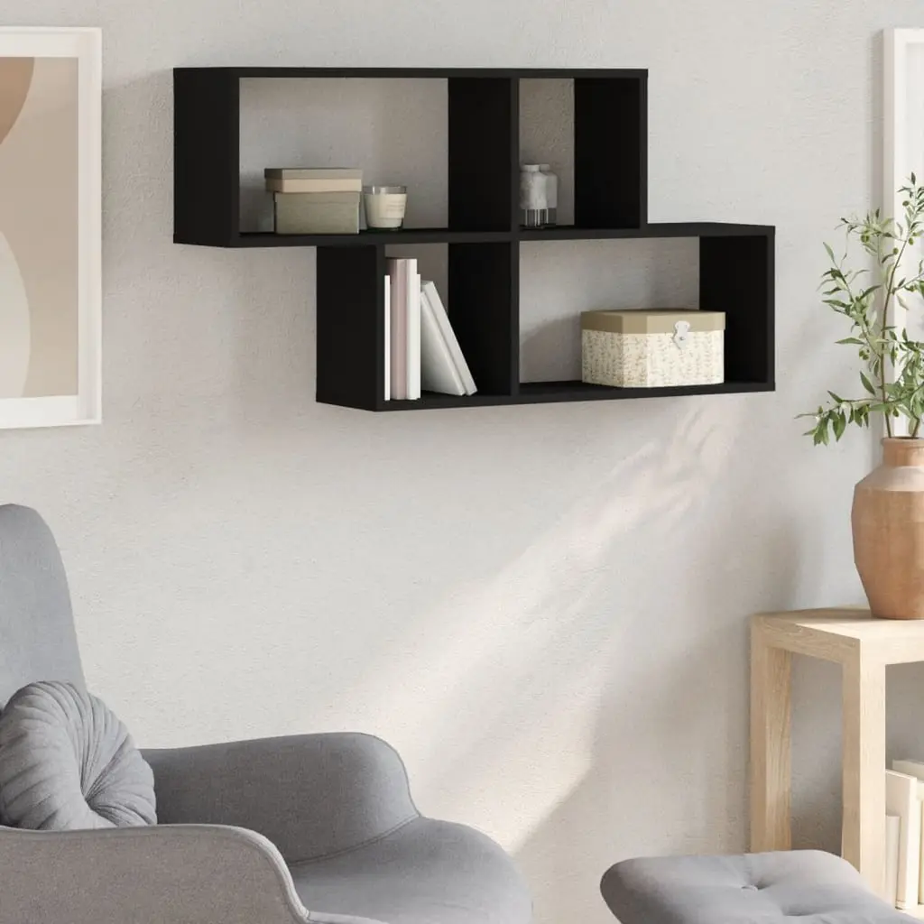 Vidaxl Wall Shelf Black Engineered Wood Wall Shelf Rectangular Modern