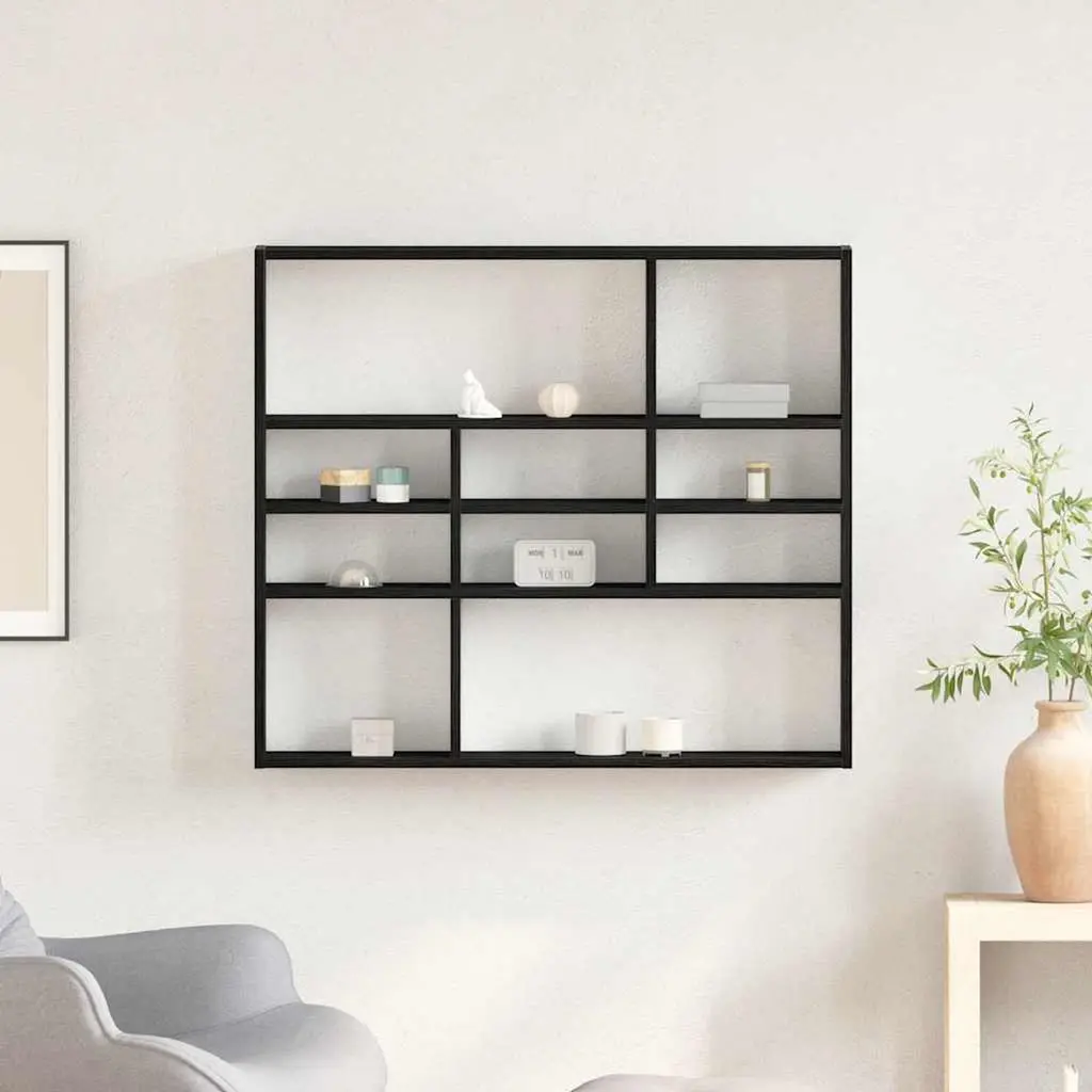 This wall-mounted floating shelf unit is a stylish and clever way to show off your favorite stuff and spruce up your indoor spaces. With its chic black oak finish, the shelf cleverly mixes practicality with modern flair, making it just the right fit for your living room, office, or study. Loads of storage for books, decorations, and more, creating a nice storage solution.Modern matte finish gives a sleek look that fits in with different decor styles.Wall-mountable feature makes the most of space without bulky furniture.Made from tough engineered wood for long-lasting use and stability.Designed with five compartments for versatility and order, perfect for any room.