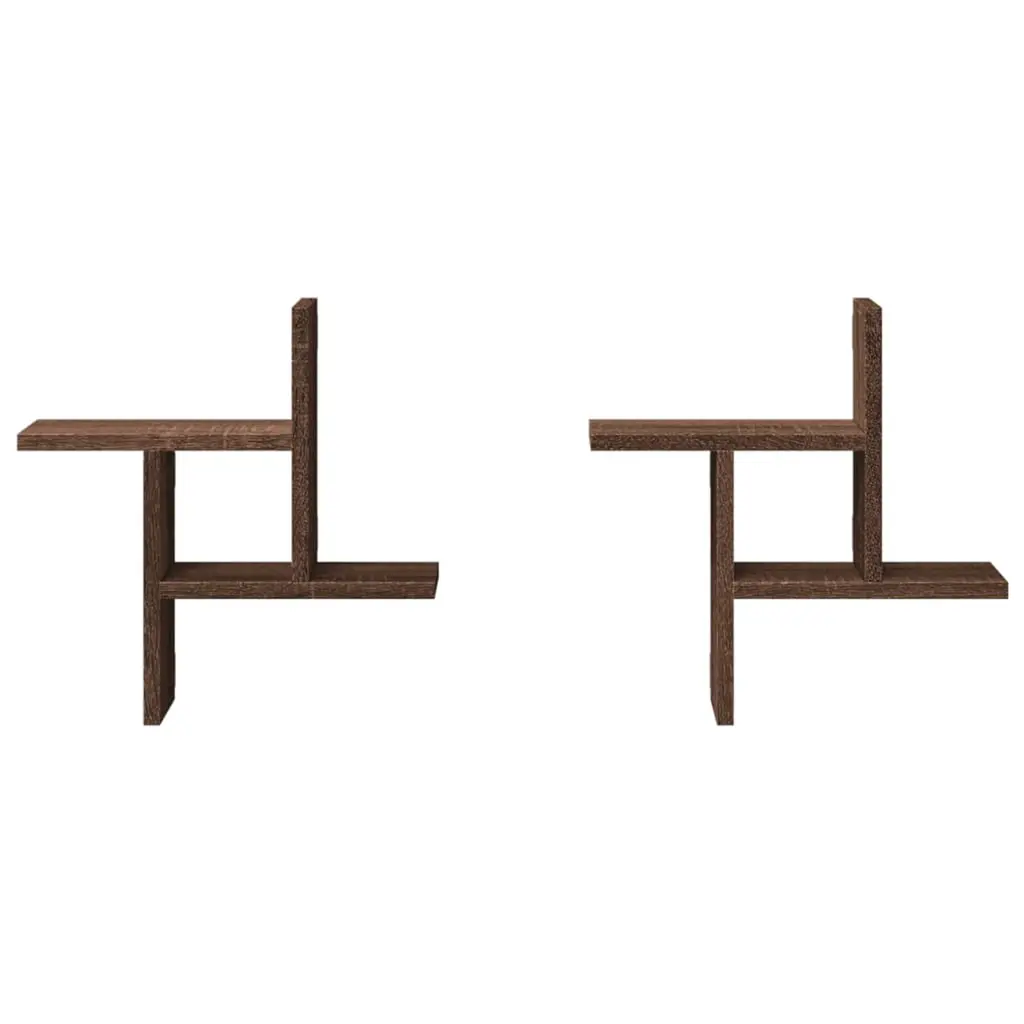 This modern wall-mounted floating shelf is a stylish way to showcase your favorite decorative pieces and books while keeping things tidy. Made from durable engineered wood, it boasts a chic brown oak finish that works well in any contemporary living room or utility space, boosting the overall look and feel of your home. Space-Saving Design: Floating shelves create the illusion of more space in your home by eliminating the need for bulky furniture. This makes them perfect for smaller areas or apartments. Ample Storage: With two generous shelves measuring 15 in in length each, you will have plenty of room to display decorative pieces, store books, or showcase plants, keeping your space organized. Matte Finish: The matte finish offers a non-reflective surface, contributing to a modern aesthetic that fits seamlessly into any interior design scheme. Easy Installation: The floating shelves come with all necessary mounting points, and although hardware is not included, they are straightforward to install, allowing you to beautify your wall in no time. Durability: Engineered wood provides a substantial hold with the capacity to support up to 22 lbs per shelf, ensuring your items are securely displayed.