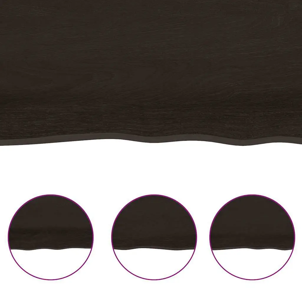 This floating wall shelf is all about mixing style with function, giving you a clever storage solution. The rich dark brown shade and the unique live edge of solid oak wood create a lovely rustic vibe, while providing lots of space for your favorite books, decor, or kitchen bits. Live Edge Design: The shelf features a beautifully crafted live edge that keeps the original character of the wood, adding a slice of nature to your home.Wall-Mountable: Designed for easy wall mounting, this shelf helps you make the most of your floor space while providing a classy display for photos, plants, or other decor bits.Solid Oak Construction: Made from high-quality solid oak wood, this shelf not only promises durability but also amps up the aesthetic of any room with its sleek finish.Easy Installation: The shelf comes prepped for wall mounting, which means a quick and easy setup; just remember, specific mounting fixtures aren't included.Versatile Usage: Works wonders in different rooms like living areas, kitchens, and bathrooms; this shelf can be used for storage or display.