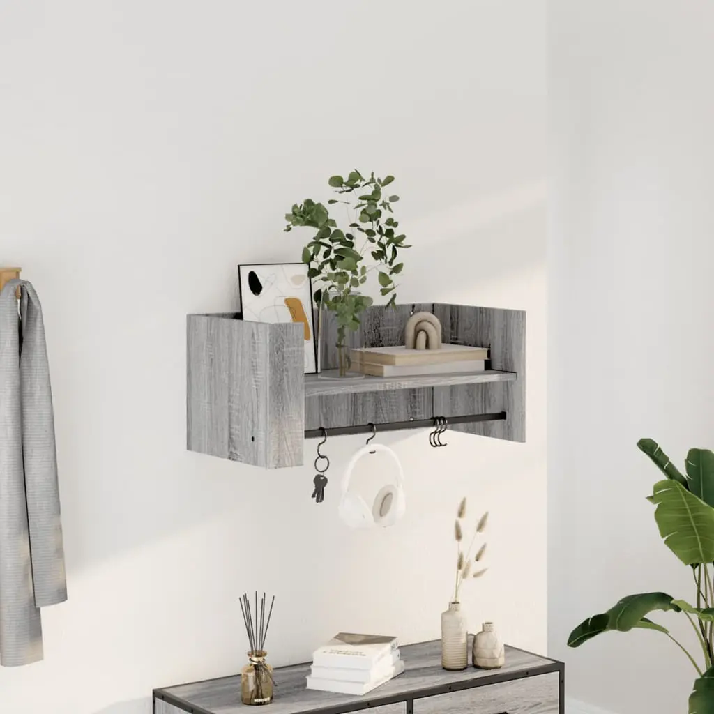 Vidaxl Wall Shelf Grey Sonoma Engineered Wood 27.8 X 13.8 X 12.0 In