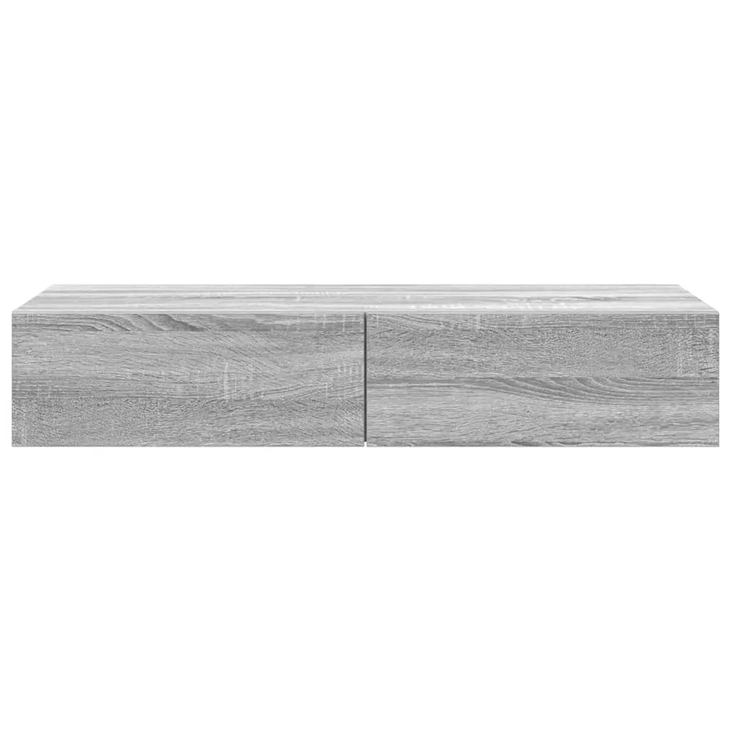 This wall shelf with drawers is a great combo of style and practicality, making it a fab choice for any living space or bedroom. With a sleek grey sonoma finish, this unit maximizes storage while also boosting the look of your room, keeping your essentials organized and easy to grab. Ample Storage: With its strong design, this wall shelf has enough space for your storage needs. It comes with two roomy drawers and a floating shelf for tidying up and displaying your essentials.Modern Design: The clean, modern lines and grey sonoma finish create a stylish and fresh look for any decor. This keeps your home looking chic while being practical.Wall-Mountable: This shelf is made for wall mounting, making good use of vertical space, which is ideal for smaller rooms or to achieve a neat look.Smooth Sliding Drawers: The drawers slide open and closed easily, providing a handy solution for grabbing your items quickly. This feature really enhances the shelf's overall functionality.Durable Material: Built from engineered wood, this shelf is made to last. Its sturdy construction ensures it stays attractive and functional for ages.