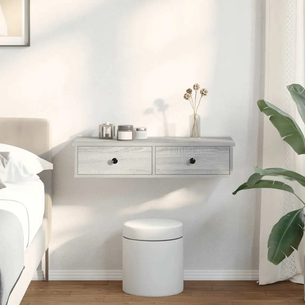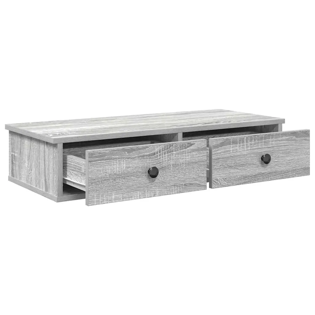 This wall-mounted shelf with drawers is the ultimate solution for stylish, practical storage. The sleek grey sonoma finish adds contemporary elegance while efficiently using wall space to keep your room looking neat and tidy. Floating Design: The floating feature gives a clean look by hiding the brackets, adding a sleek touch to your decor.Multi-functional Storage: With two roomy drawers, this shelf provides extra storage, so you can keep bits and bobs tidy while displaying decor on top.Versatile Room Use: Great for different spaces like the living room or bedroom, this shelf keeps you organized while giving easy access to essentials and decor.Durable Materials: Made from moisture-resistant engineered wood, the shelf is sturdy and easy to care for, standing up to daily use without looking shabby.Ideal Dimensions: At 31.5 in long, 13.4 in wide, and 6.7 in high, it fits perfectly above furniture and in various rooms, providing good space for storage and display.
