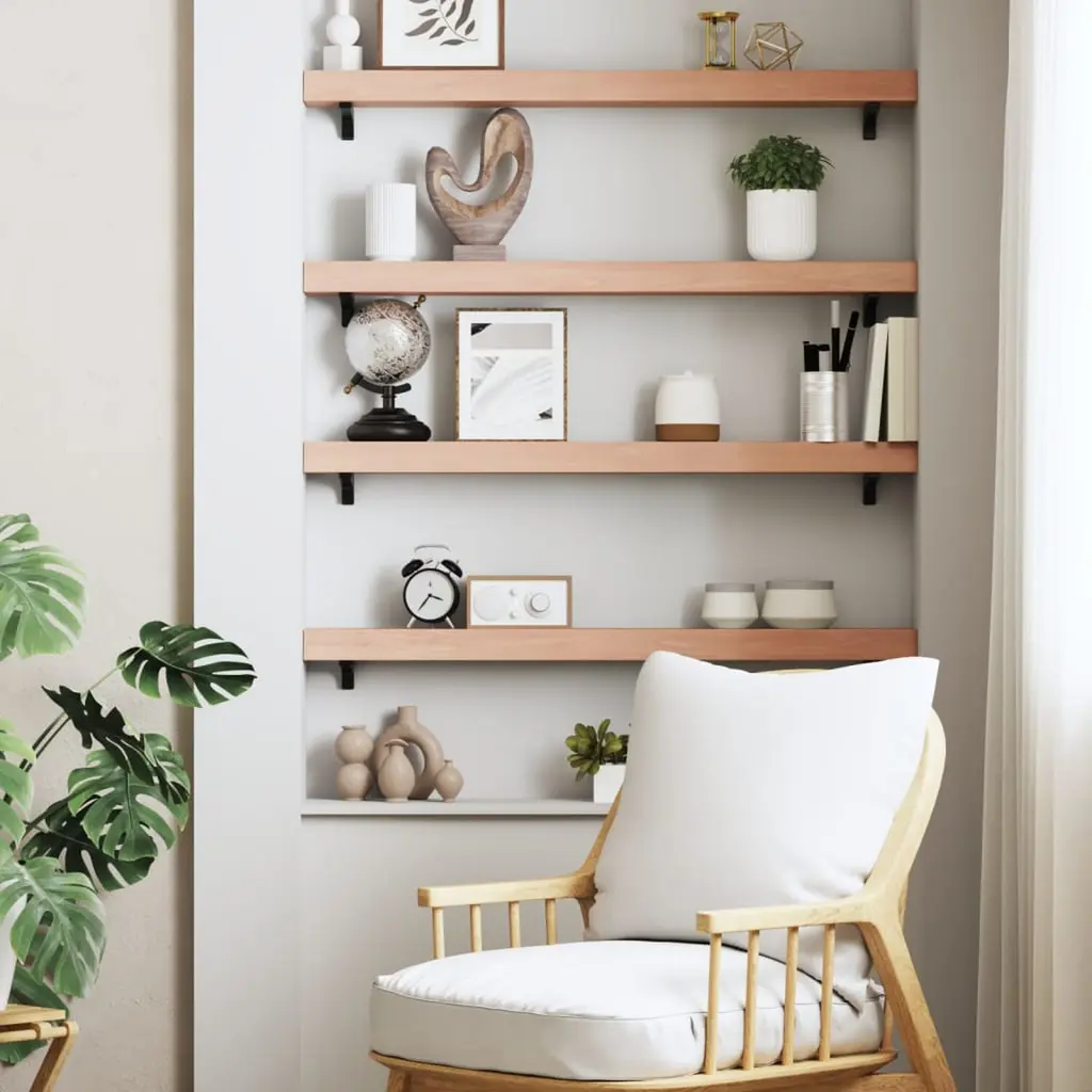 This wall-mounted shelf is all about mixing practical use with a stylish flair, making any living room, kitchen, or office space look fab. Its smooth, light brown finish showcases the natural oak grain, giving off a warm vibe that's just right for both modern and rustic styles. Quality Material: Made from solid oak, this shelf is tough enough to handle life in your home.Looks Great: The smooth and varnished surface really brings out the wood’s natural beauty.Space-Efficient: Designed to mount on the wall, it clears up space and is perfect for apartments or snug rooms.Design Versatile: Ideal for all sorts of spaces, it can hold decorations, plants, or books with no hassle.Easy to Install: With dimensions of 39.4 in long, 3.9 in wide, and 2.4 in high, setup is simple with all the mounting gear included.
