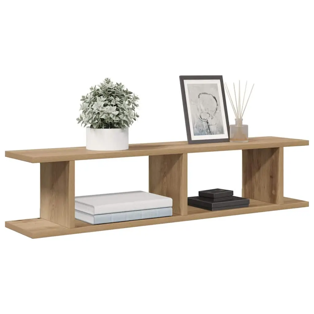 This Artisan Oak Floating Wall Shelf set is a great mix of style and practicality. It's perfect for brightening up any living room, office, or study. The modern design not only serves a storage purpose but also elevates the vibe, giving your indoor space a sleek, tidy look. Stylish Design: The floating shelves have an artisan oak finish that brings warmth and class to any space. Their sleek lines and minimalist style easily match a range of décor styles, creating a welcoming vibe.Space-Saving: Designed to be mounted on the wall, these shelves save you from bulky furniture but still provide lots of storage. They're especially good for tighter spaces where you want both efficiency and looks.Durable Material: Made from high-quality engineered wood, these shelves are tough enough to hold up to 44.1 lbs. This strong material ensures they last while also being moisture-resistant to keep damage at bay.Easy Installation: Each shelf has four mounting points and holes for seamless installation. With the wall fixtures included, you'll have everything you need to set them up quickly and start enjoying your new storage solution.Versatile Use: Perfect for showing off décor, books, or keepsakes, these shelves work wonders in living rooms, bedrooms, home offices, and kitchens. Adjust them to fit your storage needs and stylishly display your items wherever they go.