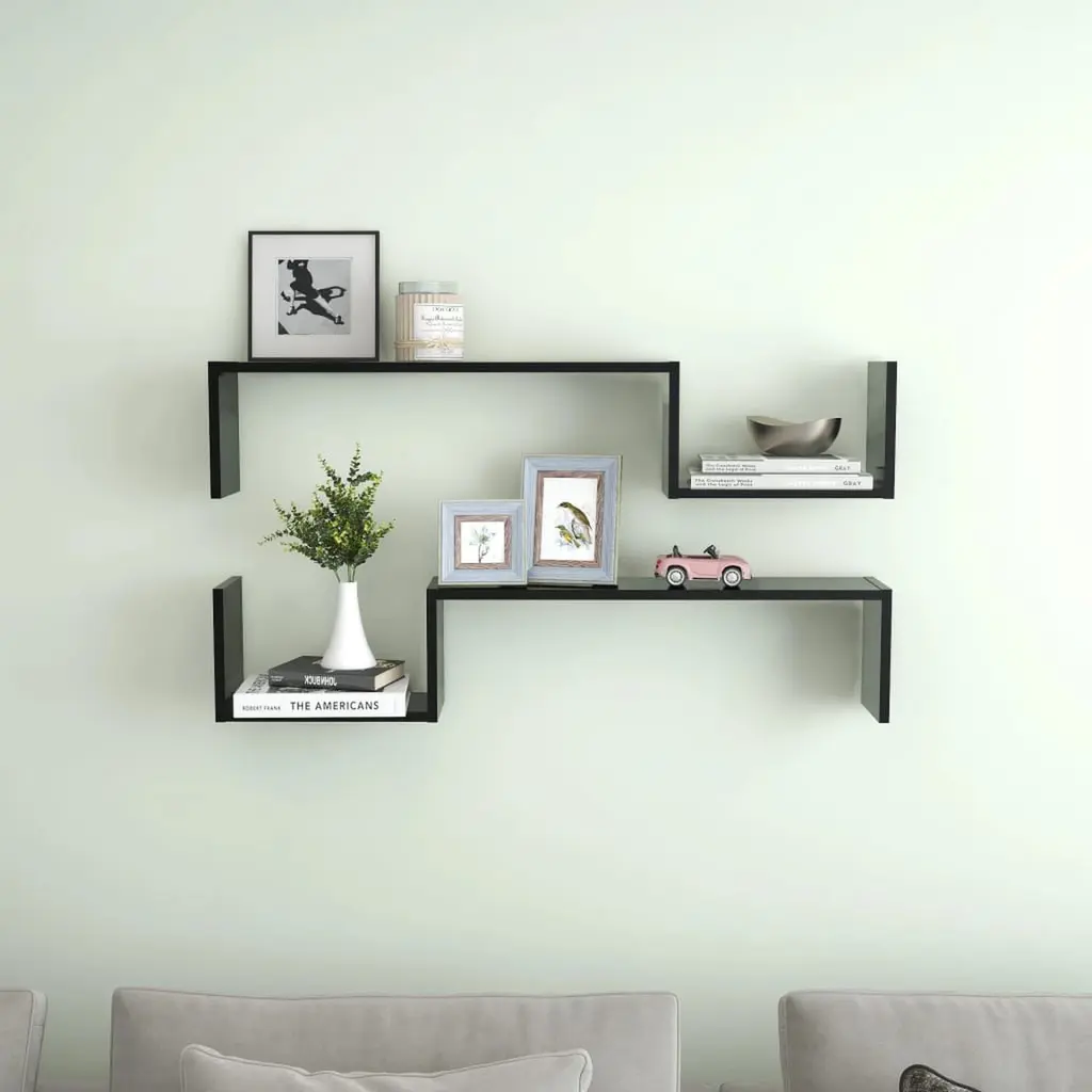 Vidaxl Wall Shelf Set Of 2 Black Engineered Wood