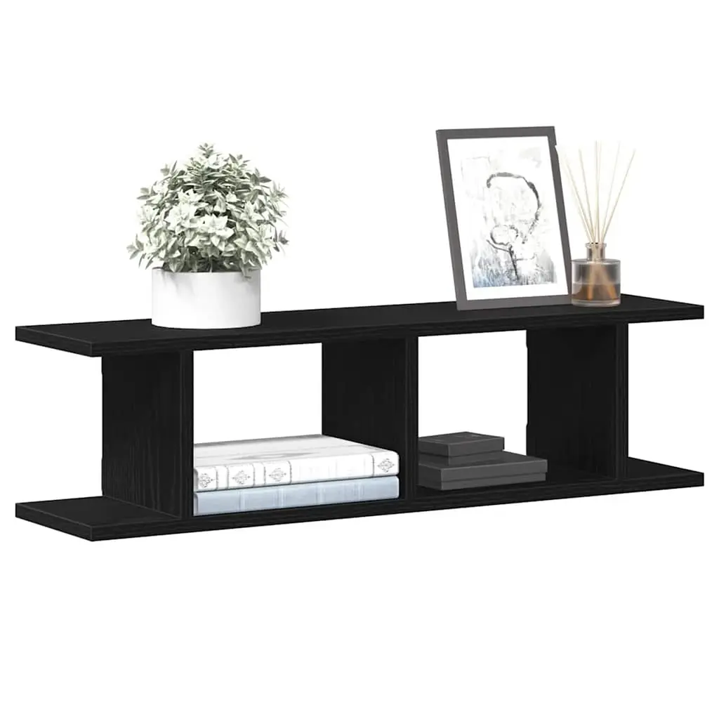 Vidaxl Wall Shelf Set Of 2 Black Oak Engineered Wood Standard
