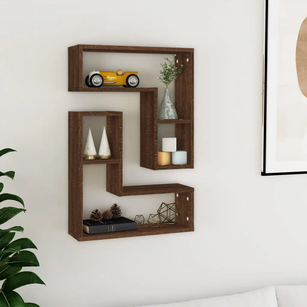 Vidaxl Wall Shelf Set Of 2 Brown Oak Engineered Wood Medium Wall Shelf