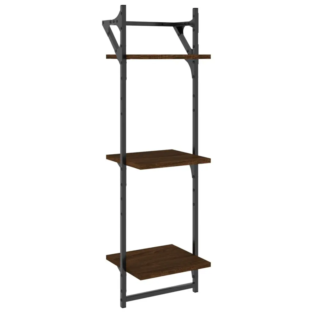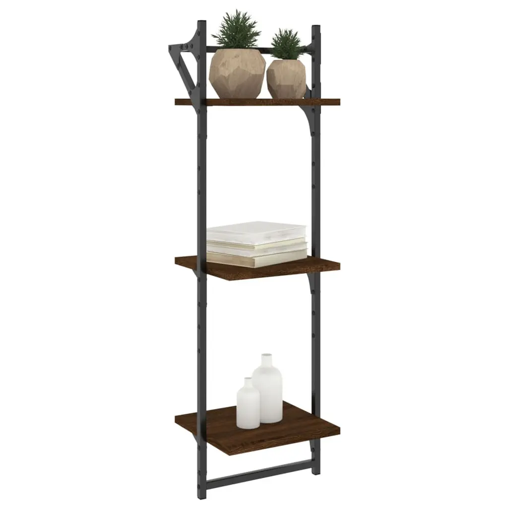 Vidaxl Wall Shelf Set Of 2 Brown Oak Engineered Wood, Metal 2 Pcs