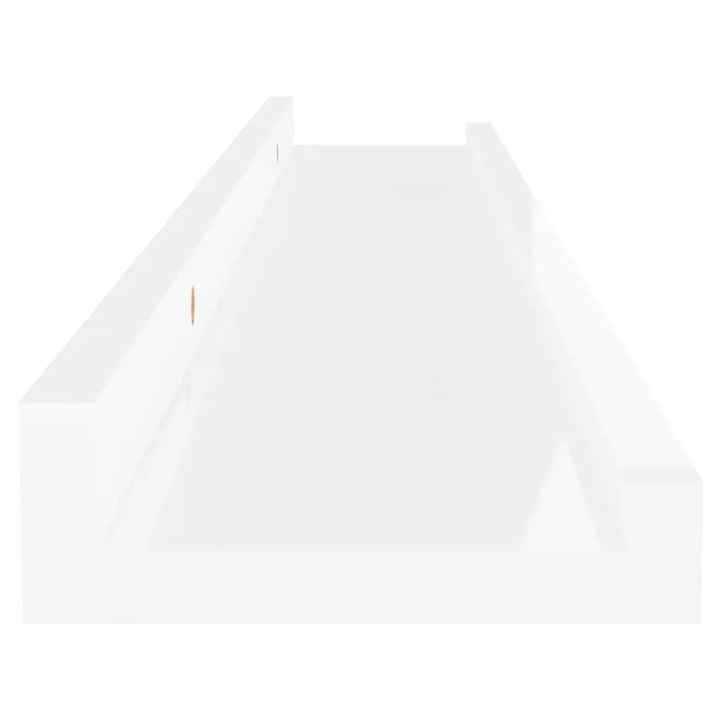 This wall-mounted shelf set is here to boost your interior decor while making the most of your wall space. With a stylish high gloss white finish, these floating shelves combine function with a modern feel, making them a fab addition to any room—living rooms, bedrooms, or offices. Their sleek rectangular shape and compact size fit snugly against the wall, perfect for displaying books, collectibles, and other decorative goodies. Stylish Appearance: The high gloss finish not only looks great but also brightens up your space, making any room feel airier and bigger.Easy Integration: The modern design of these floating shelves fits in with different decor styles, blending into any interior, be it contemporary or traditional.Effortless Maintenance: Made from sturdy MDF, these shelves are a breeze to clean—just use a damp cloth to keep them looking good as new.Lightweight Capacity: Designed to hold up to 11 lbs, they’re just right for lighter items like framed photos, small plants, or decorative touches, giving you options for displays.Complete Shelf Set: Comes with two shelves, letting you arrange them how you like—stacked or side by side, adding dimension to your wall.