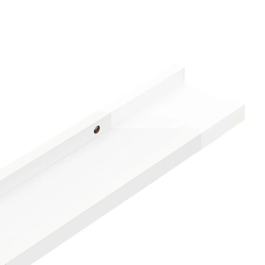 This wall-mounted shelf excels in blending style with functionality, making it an ideal choice for any living room or modern space. With sleek, high-gloss white finishes, it captivates attention while providing practical surfaces to display your favorite decorative items and essentials, effortlessly enhancing the vibe of your home. Space-Saving Design: Smartly designed to utilize vertical space, these floating shelves create a modern and airy feel in any room. Their wall-mounted nature means that floor space is spared, perfect for smaller homes or apartments.Stylish Finish: The high-gloss white finish adds a touch of sophistication, seamlessly integrating with various décor styles. Whether placed in a living room or hallway, these shelves elevate the overall aesthetic with their sleek look.Durability: Constructed from sturdy MDF, this floating shelf is built to handle lightweight décor items securely while keeping its chic appearance. The durable construction guarantees long-lasting usability as a significant part of your home furnishings.Easy Maintenance: Cleaning and upkeep are effortless with these shelves since they can be wiped down with a damp cloth. This makes it easy to maintain their pristine look without needing complex cleaning products or techniques.Versatile Uses: Perfect for displaying books, plants, or photographs, this shelf is a versatile addition to your space, ideal for any room in the house while adding an elegant touch to your interiors.
