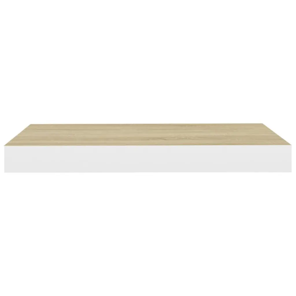 This set of two floating wall shelves boasts a sleek modern design that enhances any living space or office. With a stylish oak and white finish, these shelves not only provide handy storage but also work as decorative features that can amp up the look of your room. Minimalist Style: The modern design offers a clean look that fits right in with any decor style, perfect for both trendy and traditional spaces.Versatile Use: Great for showcasing books, collectibles, photos, or awards, providing a lovely way to display your fave items.Easy Installation: Comes with all the mounting gear and clear instructions, so you can set it up effortlessly.Quality Craftsmanship: Made from durable honeycomb MDF, these shelves are simple to clean and maintain, lasting ages without sagging or warping.Compact Dimensions: At 15.7 in long and 9.1 in wide, these shelves are just right for smaller spaces, giving you extra storage without overwhelming your decor.