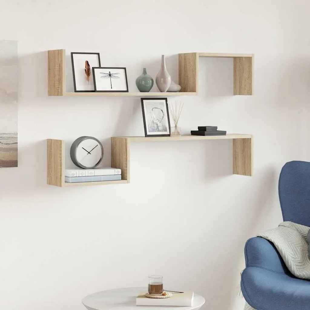Vidaxl Wall Shelf Set Of 2 Sonoma Oak Engineered Wood