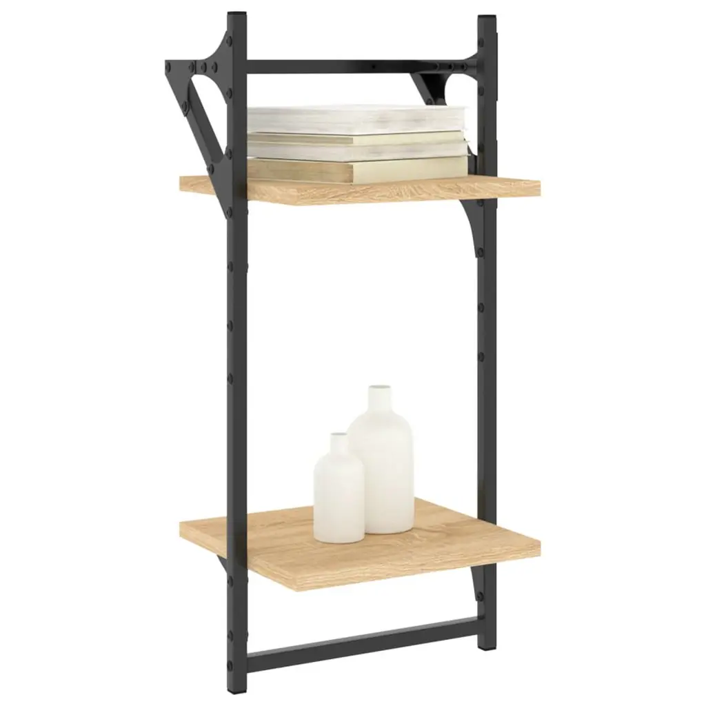 Vidaxl Wall Shelf Set Of 2 Sonoma Oak Engineered Wood, Metal