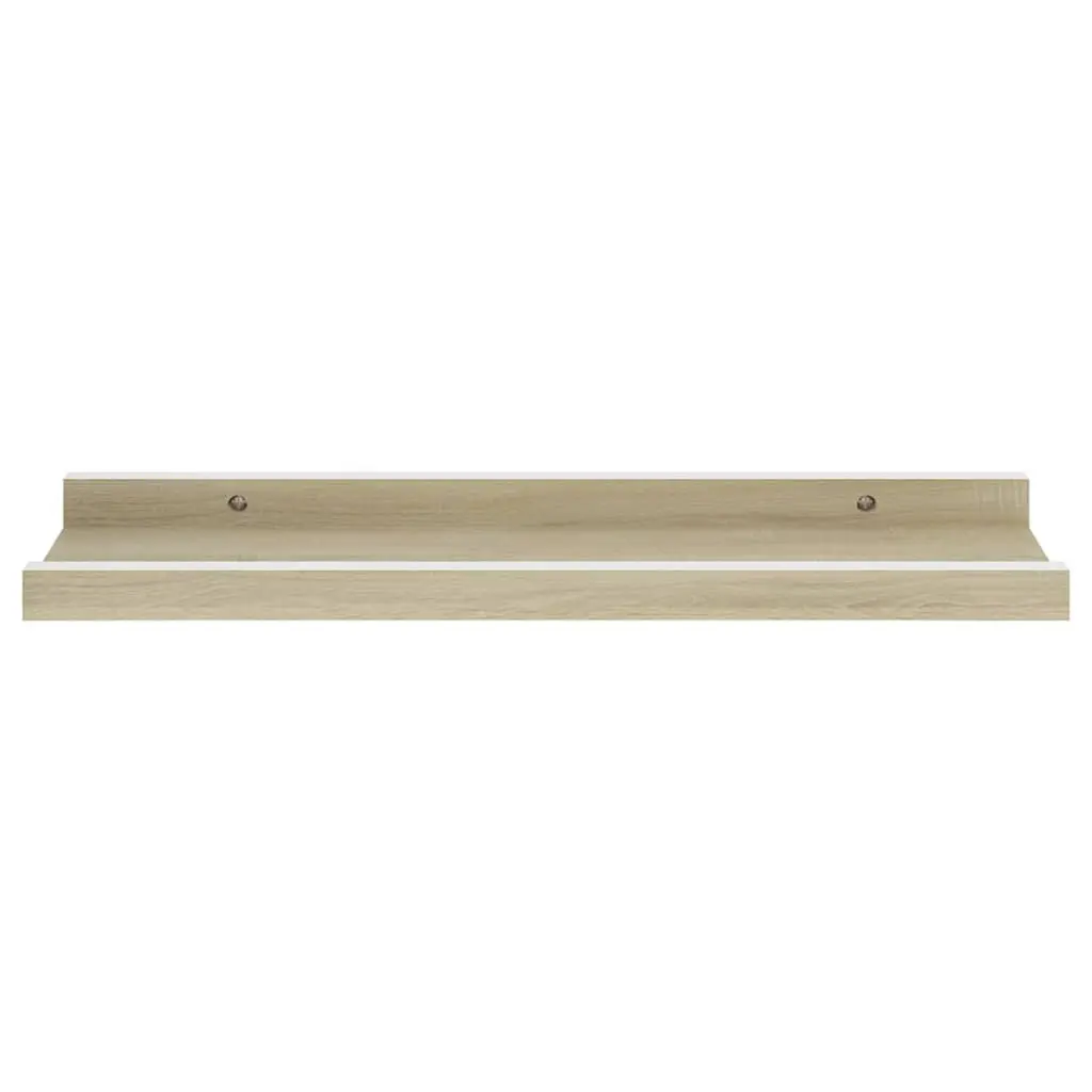 This wall shelf set offers a sleek, modern design perfect for enhancing your living room or bedroom's decor. The floating shelves elegantly save space while providing a stylish way to display cherished items, books, or decorative accents, making them ideal for any home environment. Stylish Design: Crafted with a modern matte finish, the white and sonoma oak colors complement various interior styles while creating an eye-catching display.Space-Saving: These wall-mounted shelves allow you to utilize your wall space effectively, making them perfect for small rooms or areas with limited floor space.Easy Installation: The shelves come with all necessary mounting hardware for straightforward installation, letting you achieve a fresh look in no time.Durable Construction: Made of high-quality MDF, these shelves are both sturdy and light, designed to safely hold up to 11 lbs of lightweight items.Versatile Usage: Ideal for displaying books, decorative pieces, or personal items, these shelves create an organized and stylish environment for anyone.