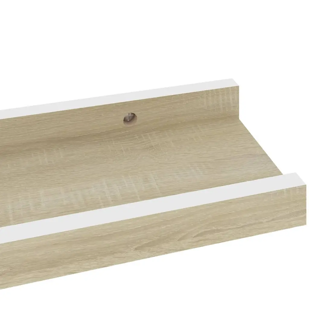 Vidaxl Wall Shelf Set Of 2 White And Sonoma Oak Mdf 15.7 X 3.5 X 1.2 In
