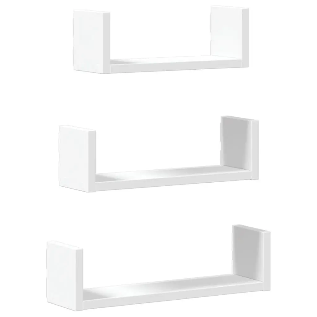 This floating wall shelf set adds a classy touch for both storage and display, ideal for modern homes. Its smooth black MDF finish gives a sophisticated vibe to any space, perfect for showcasing books, decorative items, or prized collectibles. This shelf's wall-mounted design lets you use vertical space, freeing up your floors for other stuff. It creates a tidier look overall.Made of durable MDF, these shelves are strong and can hold up to 11 lbs each, perfect for lightweight items.The matte finish gives a modern vibe, helping them match various decor styles.Each shelf's U-shaped design creates eye-catching arrangements, adding layers to your decor and personalizing your living area.Installation is easy with included hardware, so you can get these shelves up with little fuss.