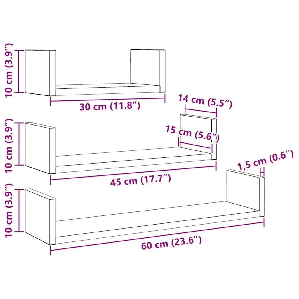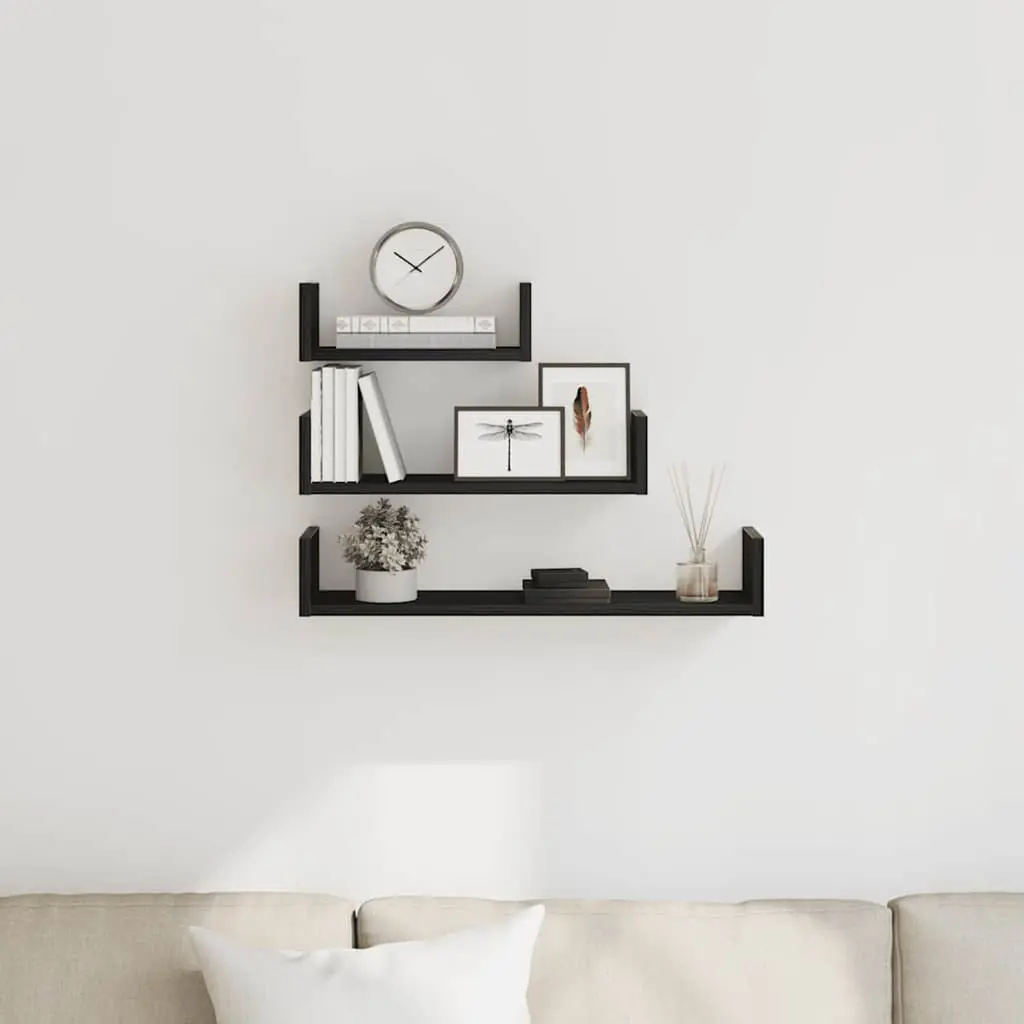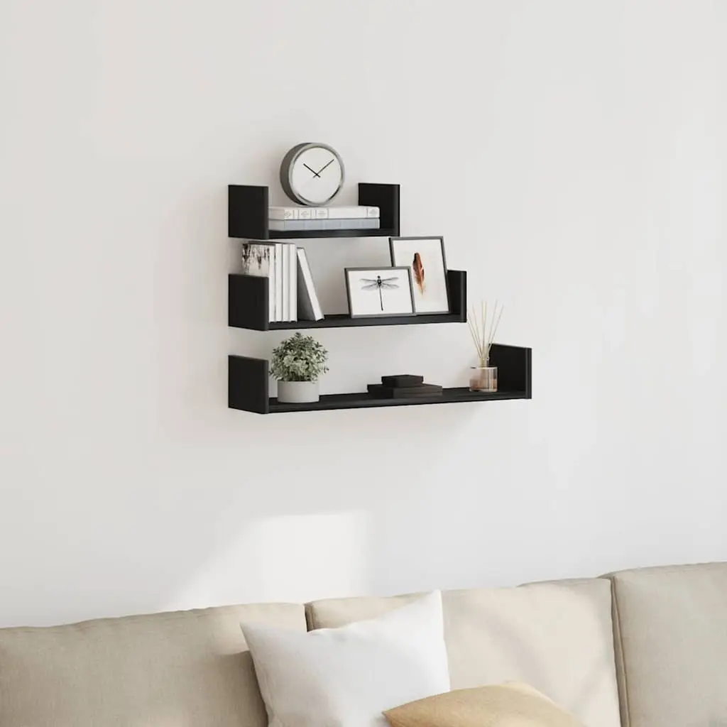 Vidaxl Wall Shelf Set Of 3 Black Oak Engineered Wood Large Wall Shelf