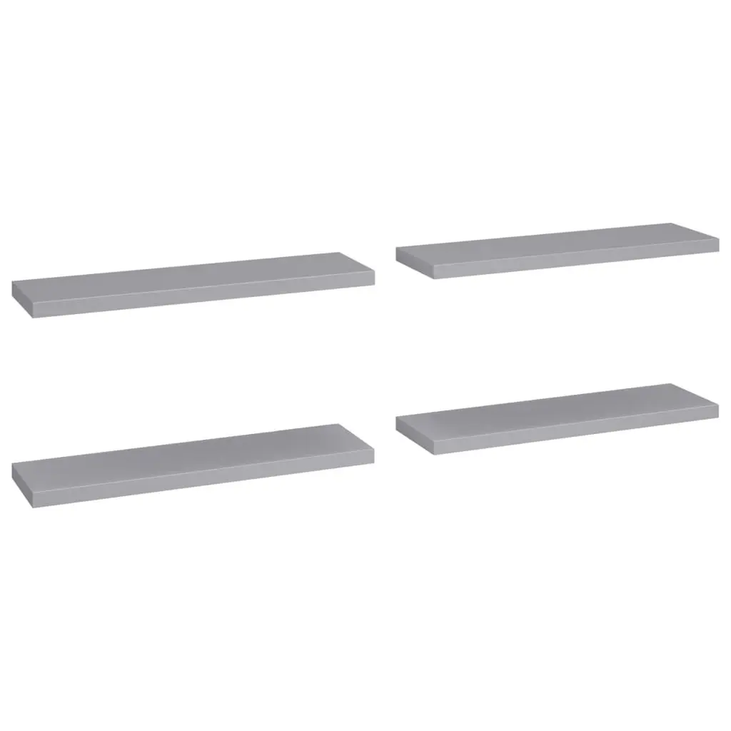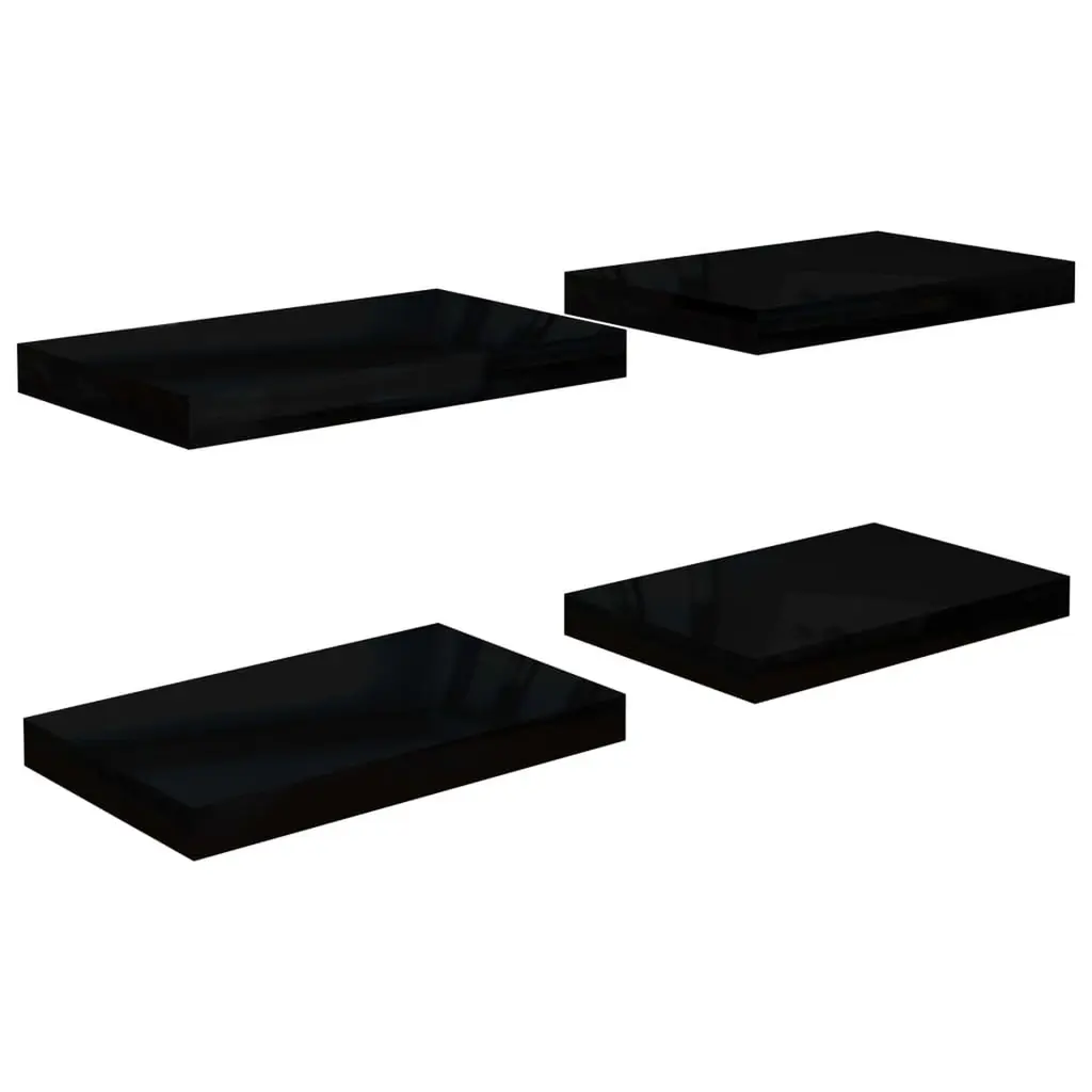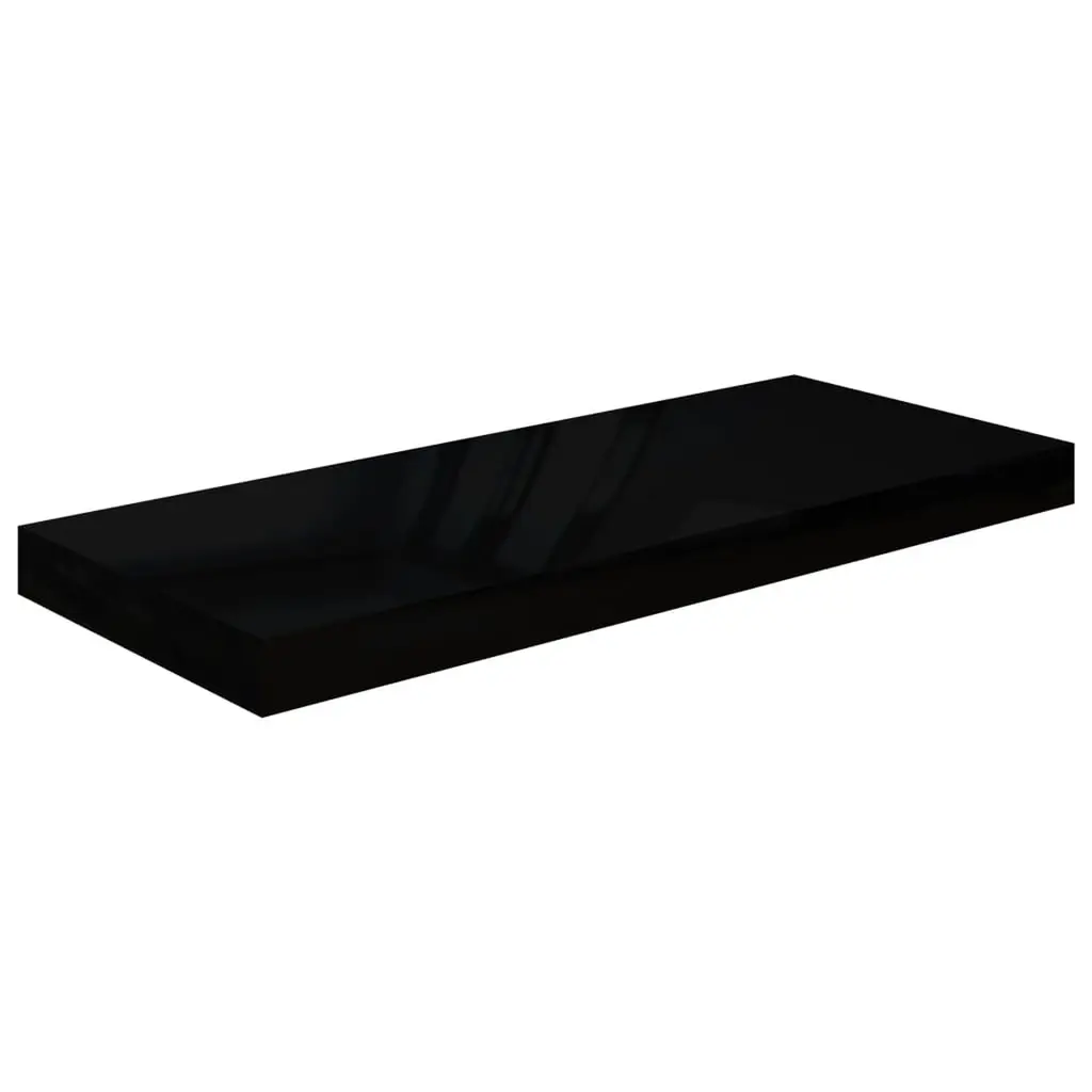This set of floating wall shelves is perfect for sprucing up your living space with both function and style. Their sleek, high gloss black finish brings a bit of modern elegance to any room, whether it’s the living room, bedroom, or office, making them a versatile pick for all your storage and display needs. Chic Aesthetic: The black, high-gloss finish not only adds sophistication but also brightens your walls, blending effortlessly with various styles.Floating Feature: Designed to look like they float, these shelves keep things tidy with no visible supports.Easy to Use: Perfect for displaying books, photos, or collectibles, enhancing your decor while providing practical storage.Sturdy Construction: Made from durable MDF, these shelves can hold up to 15.4 lbs each, ensuring your items are safe.Complete Set: Comes with four shelves, each measuring 23.6 in long, perfect for creating a stylish display area.