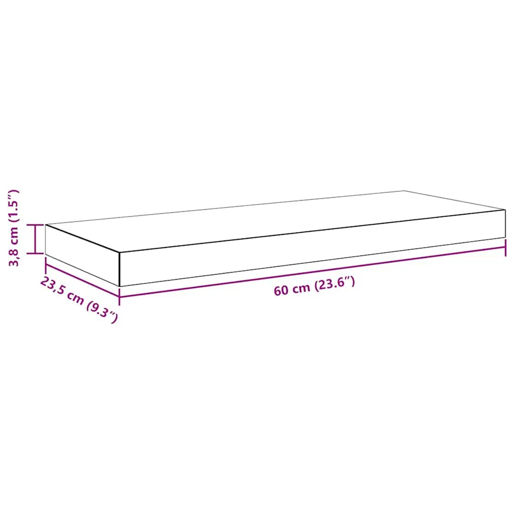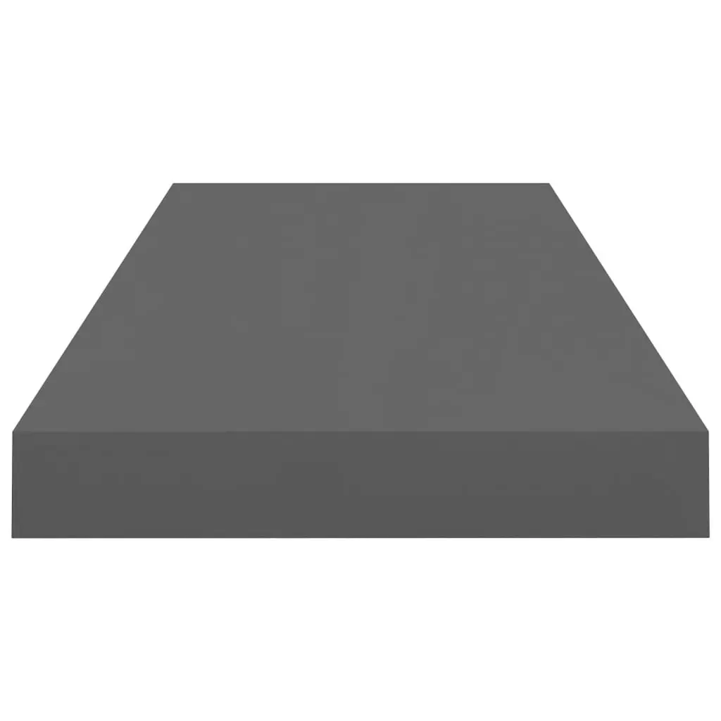 This set of 4 floating wall shelves is the ideal solution for enhancing your living spaces while providing functional storage. Crafted from high-quality MDF with a sleek high gloss grey finish, these shelves fit beautifully into any decor scheme, adding a classy touch to your living room, bedroom, or office. They offer a perfect combo of style and practicality, letting you display books, ornaments, or collectibles without showing any clutter. Seamless Design: The high gloss grey finish looks amazing, making your displayed items pop. The floating design keeps things tidy and adds a classy touch.Durable Material: Made from engineered MDF, these shelves stand up to wear while keeping their stylish look. The glossy finish not only makes them last longer but also makes cleaning super easy.Versatile Use: Ideal for any setting, these shelves can hold books, decorative pieces, or personal keepsakes. Their sleek size fits easily into any room, adding both style and function.Easy Installation: Each shelf comes with simple instructions and all the hardware needed for a quick setup. You’ll have your shelves up and showing off your favorite items in no time.Weight Capacity: Each shelf can hold up to 15.4 lbs, giving you plenty of strength for your decorative needs while keeping everything secure.