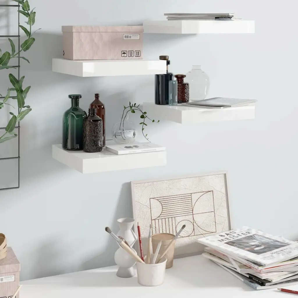 Vidaxl Wall Shelf Set Of 4 High Gloss White Honeycomb Mdf, Metal
