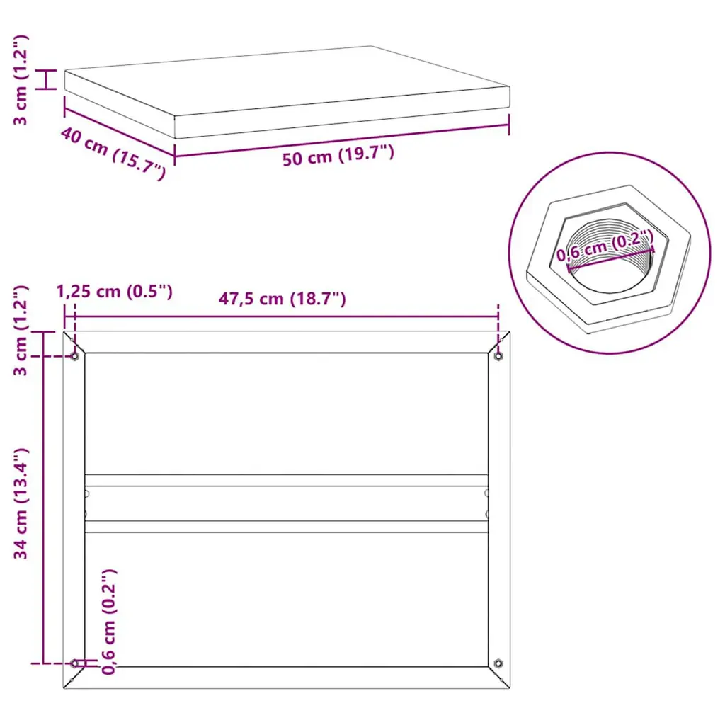Vidaxl Wall Shelf Silver Stainless Steel 19.7 X 15.7 X 1.2 In