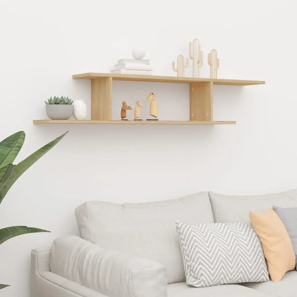 This Sonoma Oak Wall-Mounted TV Shelf mixes style with practicality, giving a sharp and modern solution for your living area. Made from engineered wood, it looks great while offering solid support for your gadgets and decorative items, keeping your room tidy and well-organized. Asymmetrical Design: This quirky staggered look adds a special touch to your room, becoming a visual highlight for both electronics and decor. Space Efficient: By mounting it on the wall, this shelf saves precious floor space, making it great for smaller places. It helps create a more open vibe in your living area. Durable Construction: Built from solid engineered wood, this shelf can handle up to 88.2 lbs, giving you sturdy support for your TV, books, or decor pieces. The matte finish keeps it sporty and stylish for years. Versatile Use: Use it for storing AV gear, DVDs, or as a display for cherished items. It’s flexible enough to fit your needs, whether you’re decluttering or sprucing up your living room. Easy to Clean: Its smooth surface makes cleaning a breeze, so you can keep it looking top-notch with just a damp cloth. Perfect for busy households.