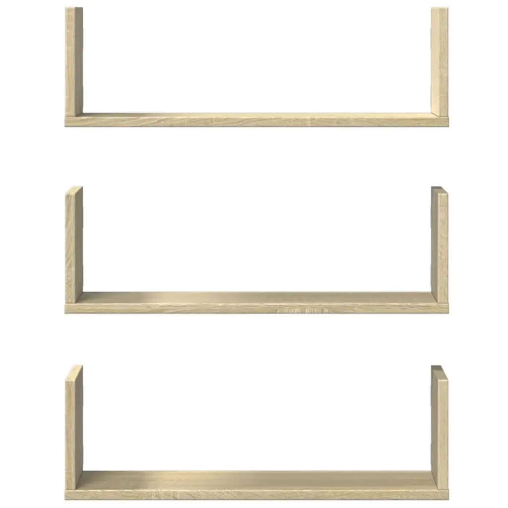 This Sonoma Oak Wall Shelf set adds a stylish element to any room with its modern design and smooth finish. Ideal for your living room or bedroom, these floating shelves offer plenty of space for displaying your favorite items like photos, books, or decor, seamlessly fitting into your home. Stylish Appearance: The textured finish and clean lines create a sophisticated look that suits various decor styles.Floating Design: Mounted directly to the wall, these shelves enhance the visual space while offering a seamless storage solution.Easy Installation: Designed for wall-mounting, these shelves come with clear instructions for hassle-free setup.Durable Construction: Made from moisture-resistant engineered wood, ensuring longevity and stability for your displayed items.Perfect Dimensions: Each shelf measures 22.8 in long and can hold up to 11 lbs, making it practical for various items.