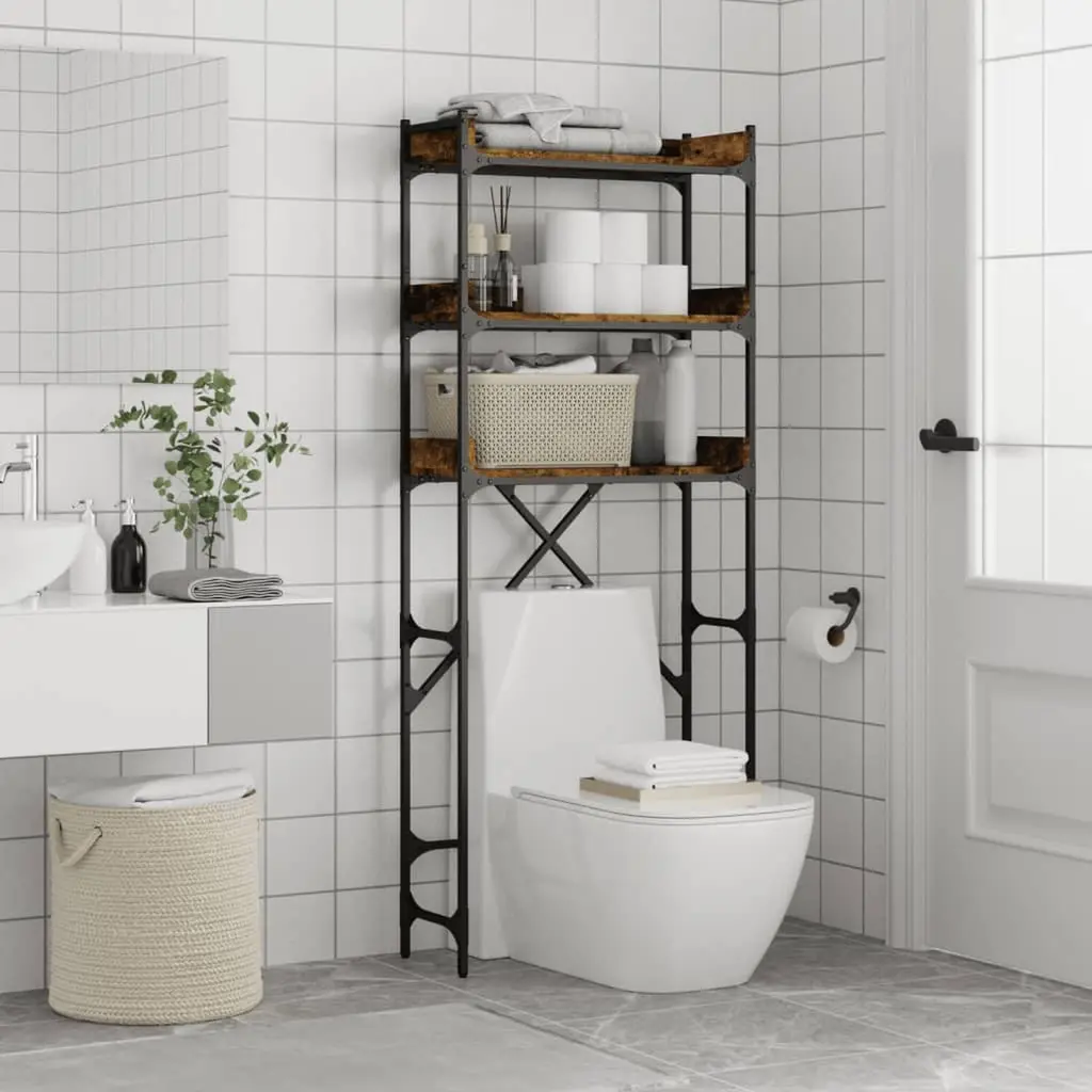 This 3-tier washing machine shelf is a perfect solution to create extra storage spaces for an overcrowded bathroom or laundry room.Durable material: The engineered wood is of exceptional quality with smooth surface and also features strength, stability and resistance to moisture. Made of engineered wood, the bathroom shelf is easy to clean.Ample storage space: The bathroom storage features 3 shelves, offering ample space to easily hold your essential cleaning supplies such as soap, laundry detergent, fabric softener, and more.Space-saving design: The bathroom organizer is designed to be placed above the washing machine or toilet, fitting well in small spaces and making it ideal for small bathrooms and laundry rooms.Adjustable feet: The adjustable feet with plastic pads keep the toilet stand balanced on uneven ground and increase stability.Metal frame: The metal frame adds an industrial style to your interior while ensuring durability and stability.Warning:To prevent it being overturned, this product must be used with the provided wall attachment device.Good to know:Screws and plugs for inside the wall are not included. We advise to find and use screws and plugs suitable specifically for your walls. If you're not sure, you can consult with a professional. Please read and follow each step of the instructions.