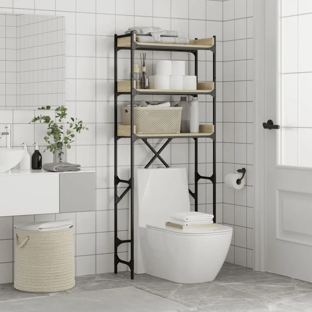 This 3-tier washing machine shelf is a perfect solution to create extra storage spaces for an overcrowded bathroom or laundry room.Durable material: The engineered wood is of exceptional quality with smooth surface and also features strength, stability and resistance to moisture. Made of engineered wood, the bathroom shelf is easy to clean.Ample storage space: The bathroom storage features 3 shelves, offering ample space to easily hold your essential cleaning supplies such as soap, laundry detergent, fabric softener, and more.Space-saving design: The bathroom organizer is designed to be placed above the washing machine or toilet, fitting well in small spaces and making it ideal for small bathrooms and laundry rooms.Adjustable feet: The adjustable feet with plastic pads keep the toilet stand balanced on uneven ground and increase stability.Metal frame: The metal frame adds an industrial style to your interior while ensuring durability and stability.Warning:To prevent it being overturned, this product must be used with the provided wall attachment device.Good to know:Screws and plugs for inside the wall are not included. We advise to find and use screws and plugs suitable specifically for your walls. If you're not sure, you can consult with a professional. Please read and follow each step of the instructions.