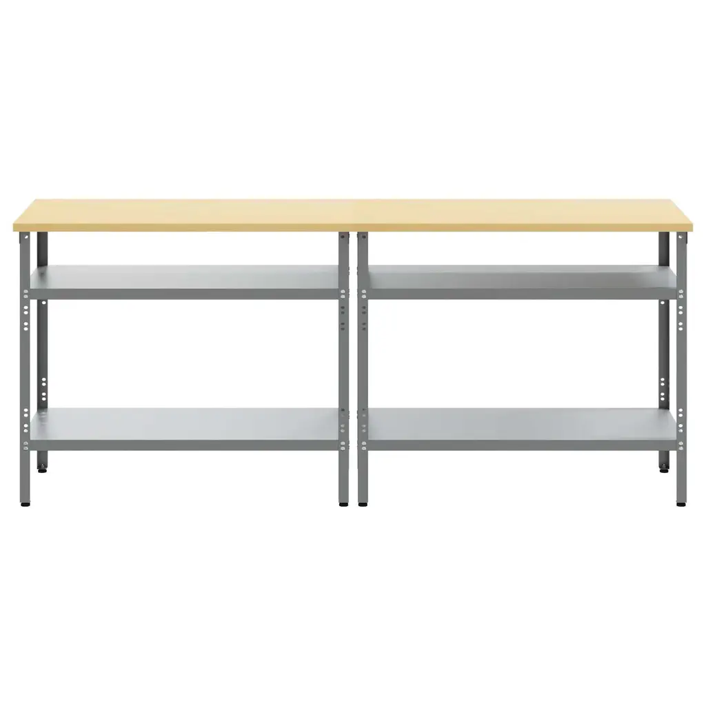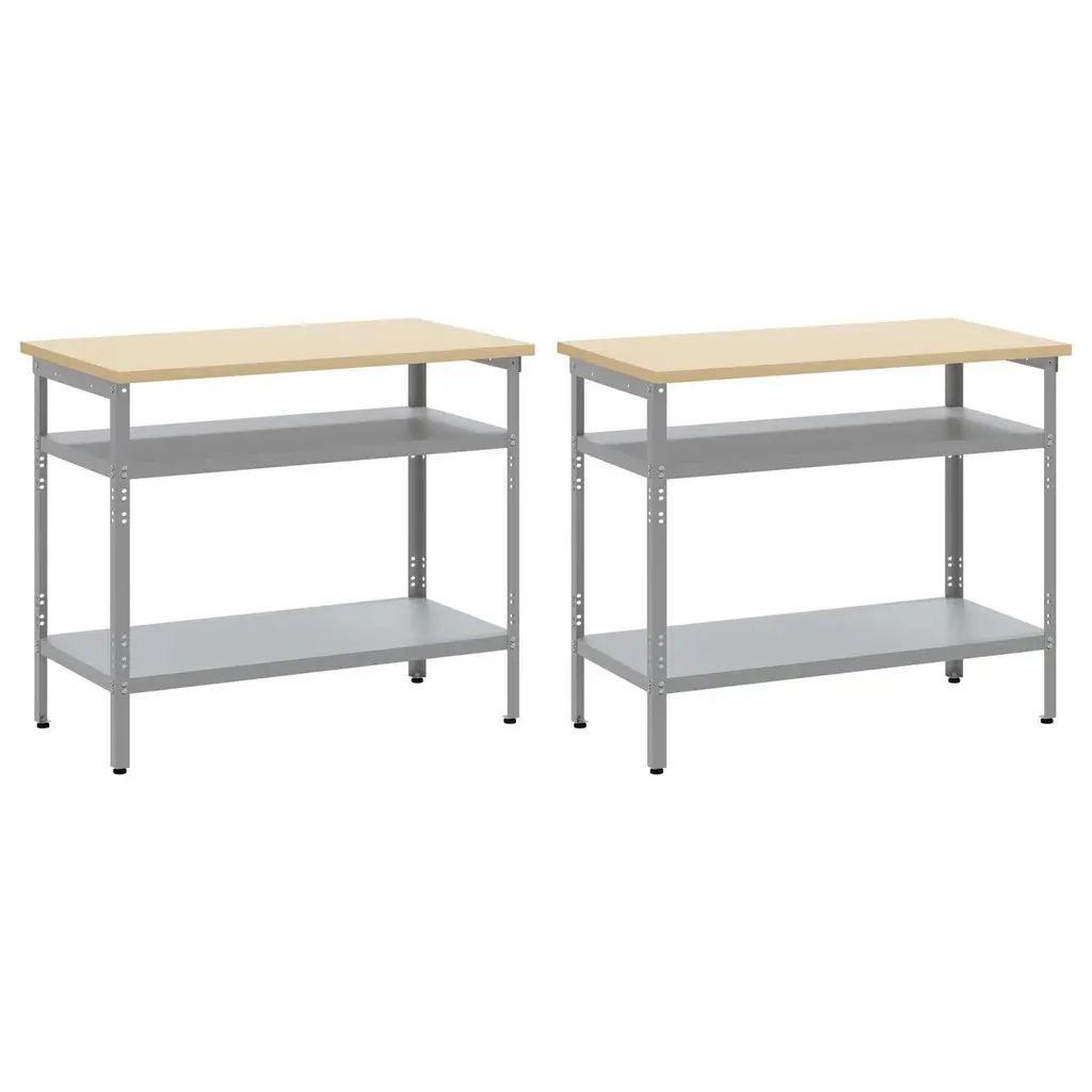 Vidaxl Work Bench Set With Shelf 2 Pcs Gray 200 X 55 X 85 Cm Steel