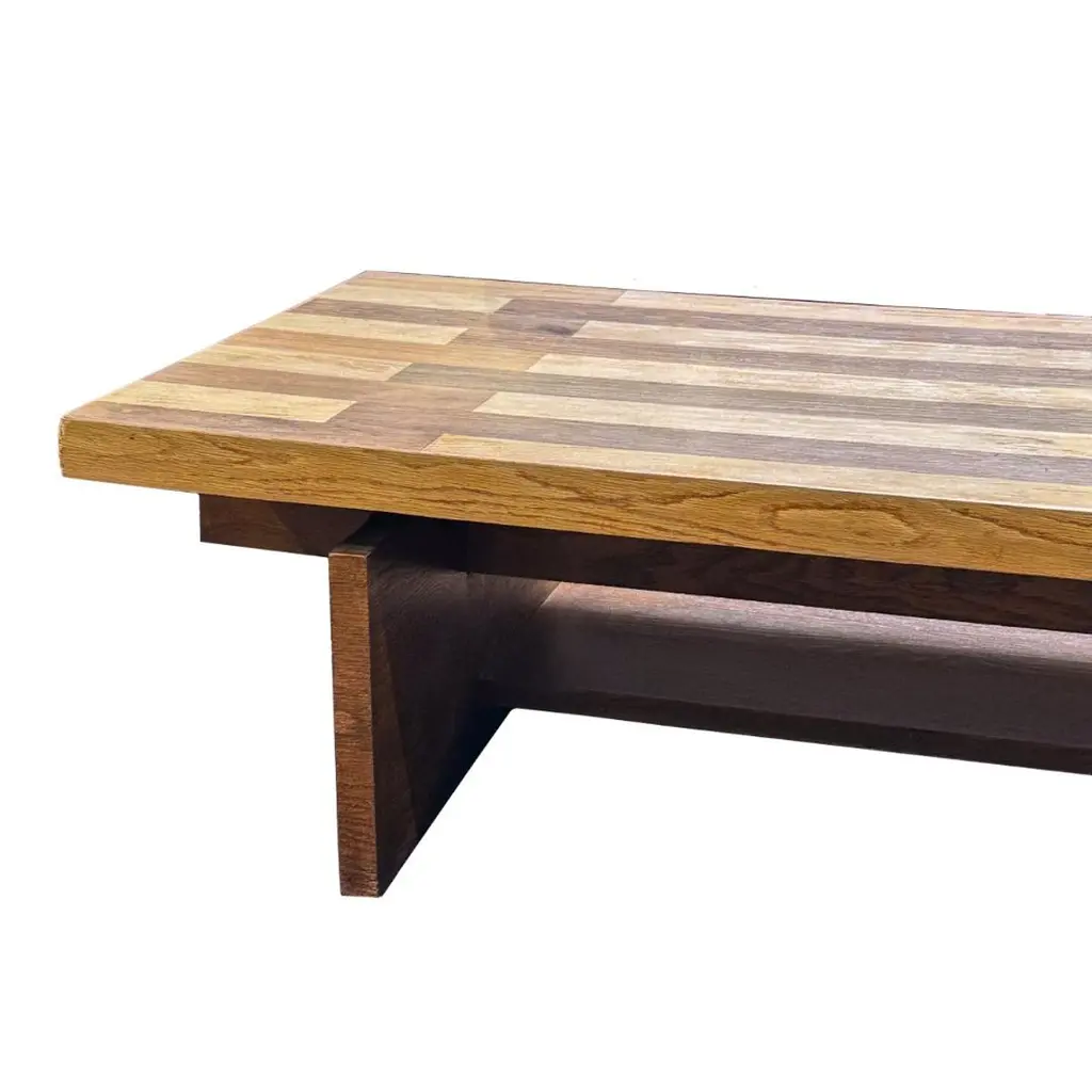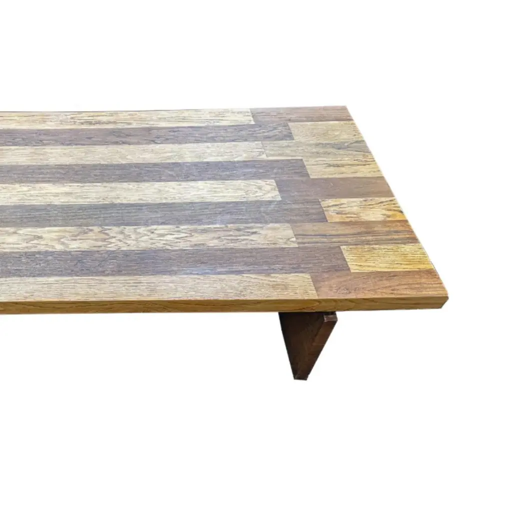 Make a statement with this unique coffee table by Lane Furniture, thoughtfully crafted in a striking patchwork design. The rich textures and warm, natural tones add depth and character, making it a timeless centerpiece for any living space. Features lower shelf. Wear is consistent with age and use. See photos for details.68” W x 30” D x 15.25” H