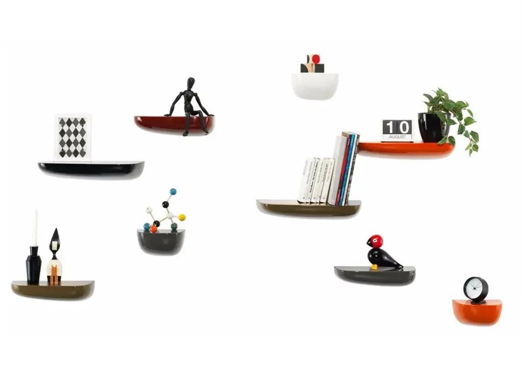 Corniches arose from the need for small impromptu storage spaces for miscellaneous items. 'The same way that we hang our belongings on a rock jutting from a cliff before diving into the sea, we need small, informal storage in everyday life too', explains Ronan Bouroullec. And this is the reason that Corniches are neither regular shelves nor simple horizontal surfaces, but rather individual, isolated protrusions in the environments that we create.Whether as a key rack beside the front door, a spot to put everything we need to have at our fingertips in the bathroom, a display surface for a small collection of objects or as a large installation, Corniches are a new way to use the walls in our living spaces.Materials:- Shell: ASA plastic, high-gloss surface.- Wall bracket: polyamide.- Packaging: premium gift box.