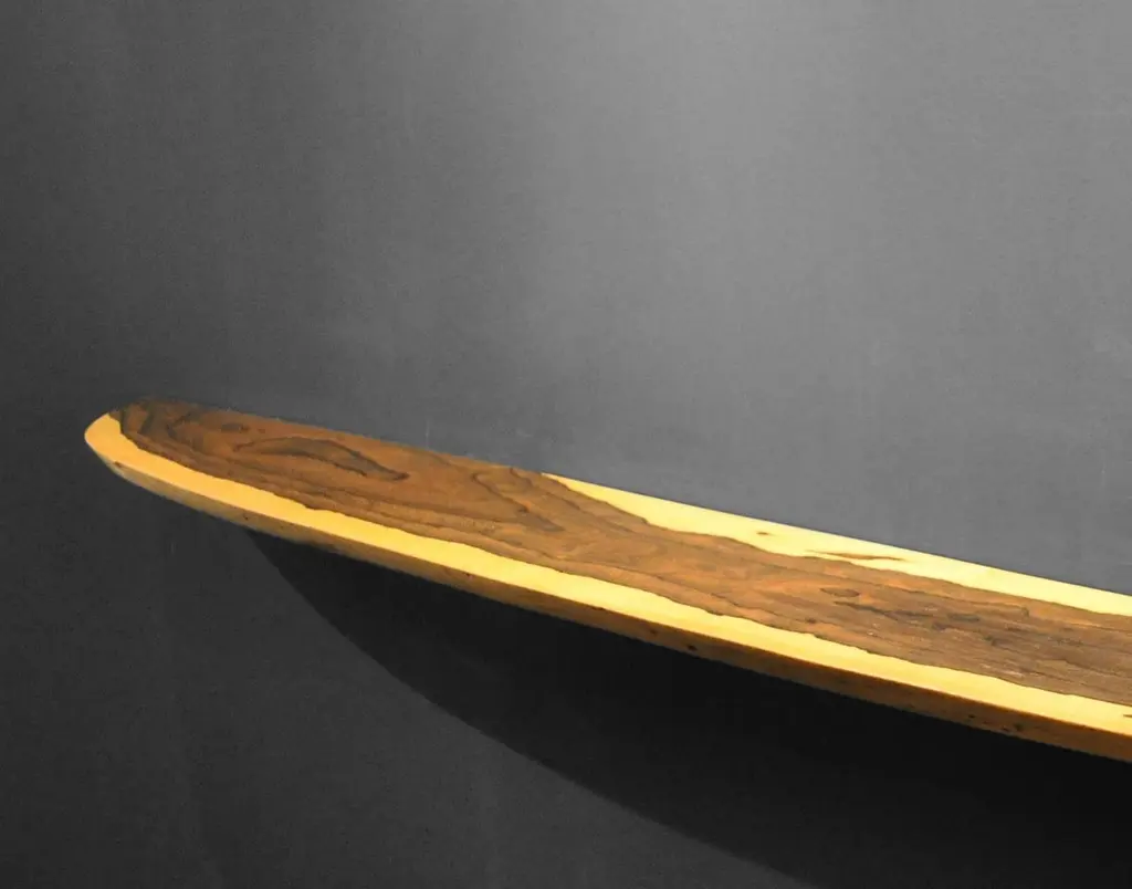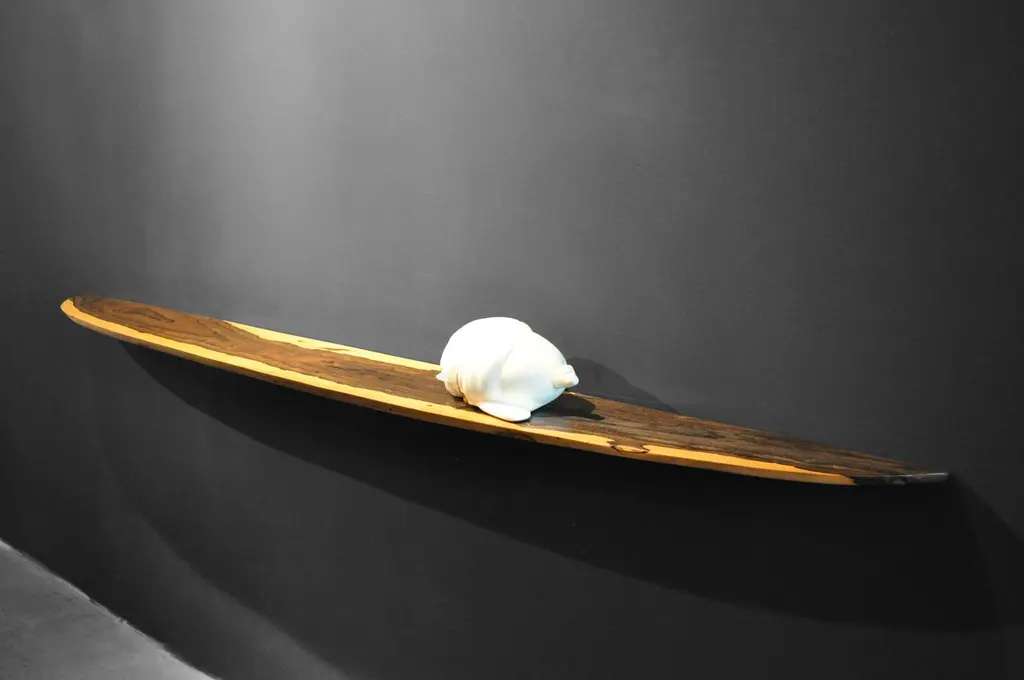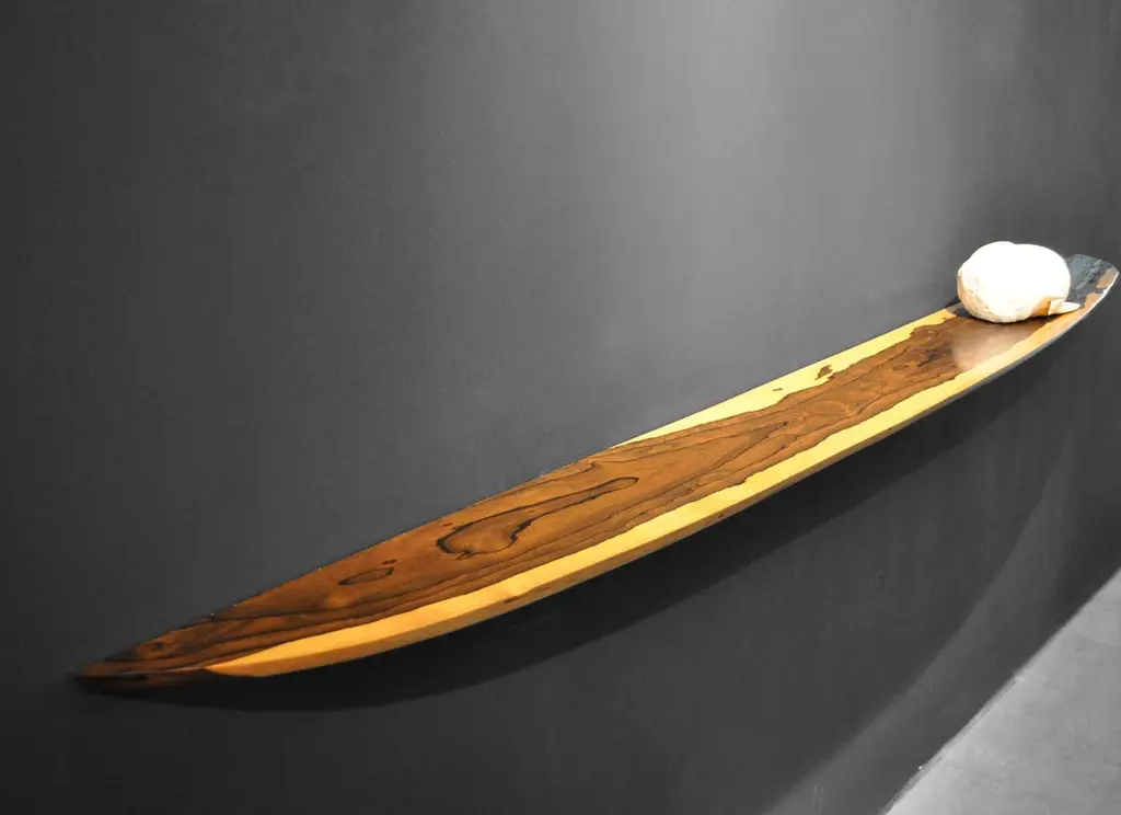 W0099 Wall Hanging Shelf in Zirikote Wood by Jörg PietschmannDimensions: D 23 x W 190 x H 3 cm.Materials: Zirikote wood.In Pietschmann’s sculptures, trees that for centuries were part of a landscape and founded in primordial forces tell stories inscribed in the memory of their fibers.The forms Jörg Pietschmann pares from ancient trees are extensive and astonish with their physical presence, a combination of elegance and primeval nature. Pietschmann’s sculptures are monuments to the trees from which they derive.Being endowed with the ruggedness of primeval matter gives them a veritable vitality: figures that appear to have grown into their sculptural form of their own accord. But Pietschmann’s tangibly present bodies have undergone a considerable degree of metamorphosis.In order to generate these unique tree specimens he examines the tree’s morphology and intrinsic inner map until the courses of its grain, of a curve, knots and cracks concur with his projections. The exploratory process is accompanied by constant modification, giving at the start of each new piece no more than an intimation of the figure that will later emerge. In their completion, Pietschmann’s sculptures once more become universal form.Jörg Pietschmann`s workshop is situated on the countryside close to Hamburg. He works with indigenous timber as oak, lime tree, beech, poplar, olive tree and maple felled by the wind or human hand, together with tropical timber found on his travels.