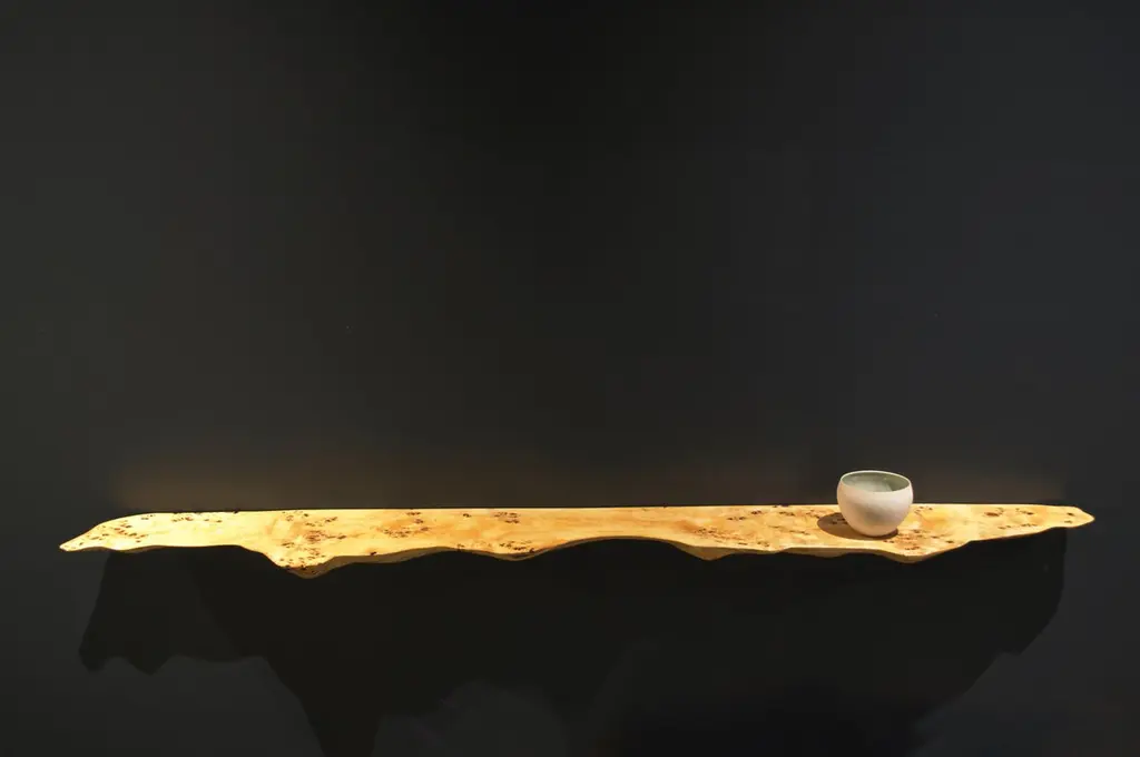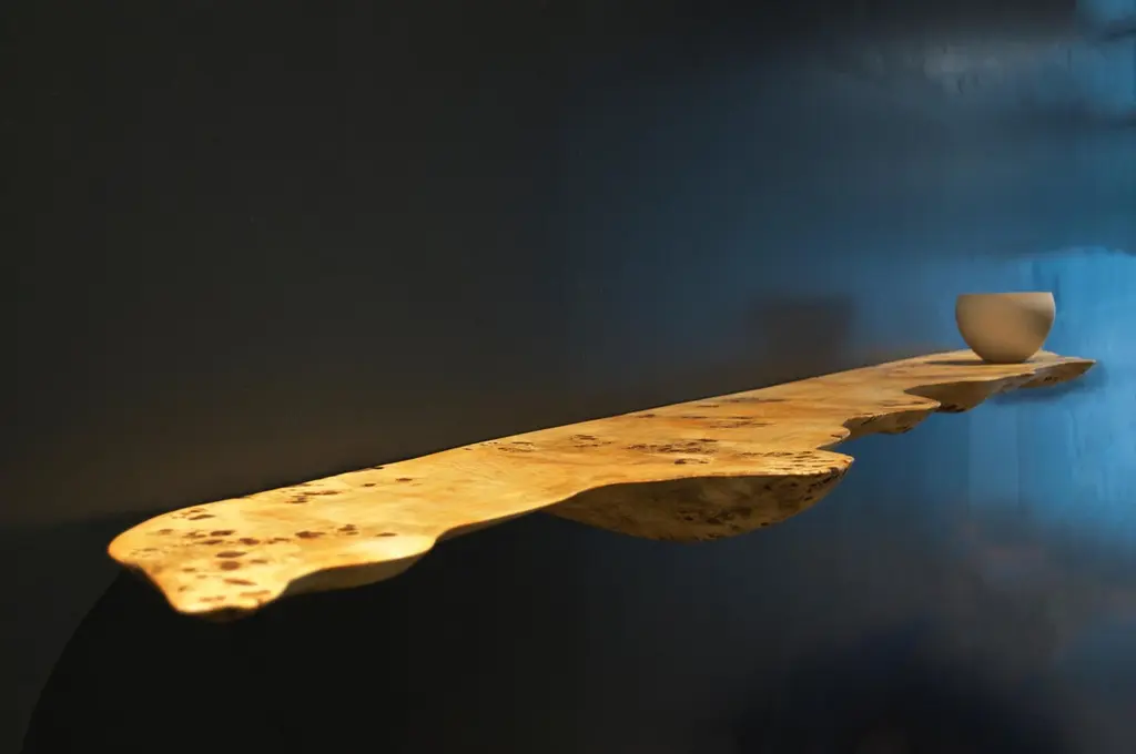 W1264 Wall Hanging Shelf In Poplar Burl Wood By Jörg Pietschmann