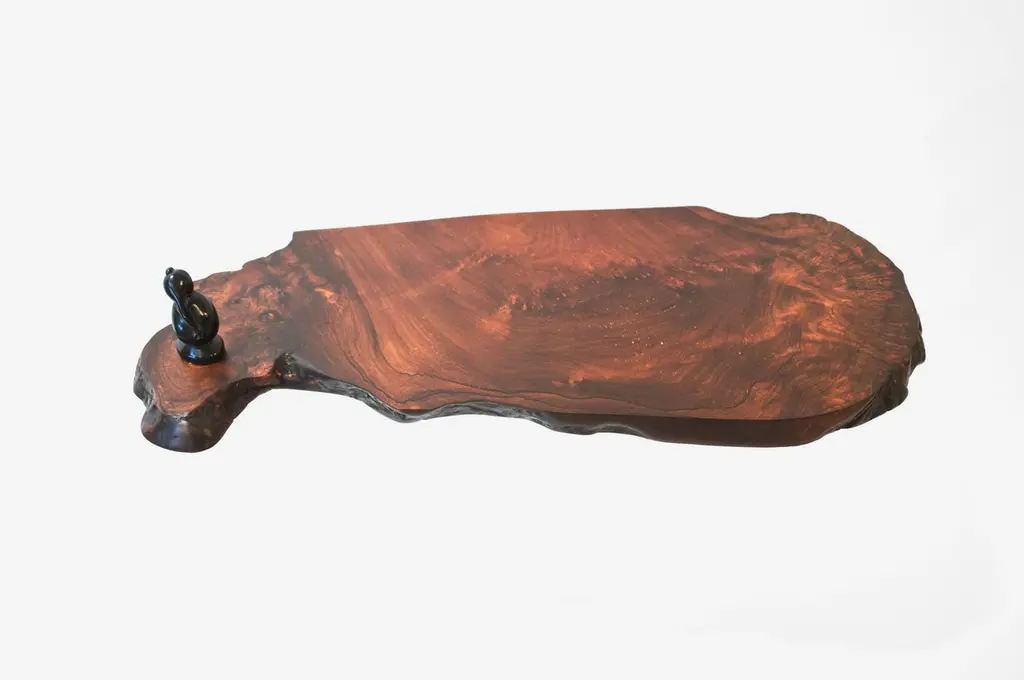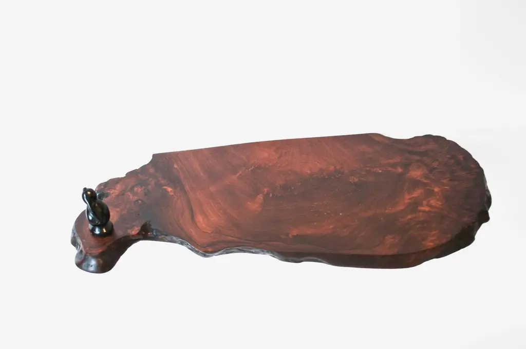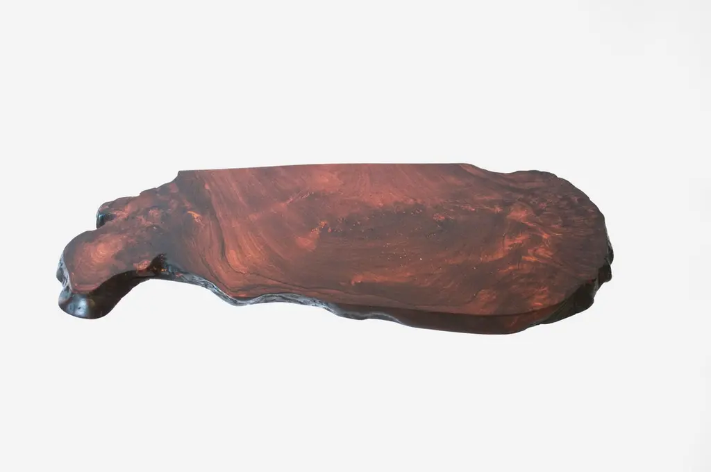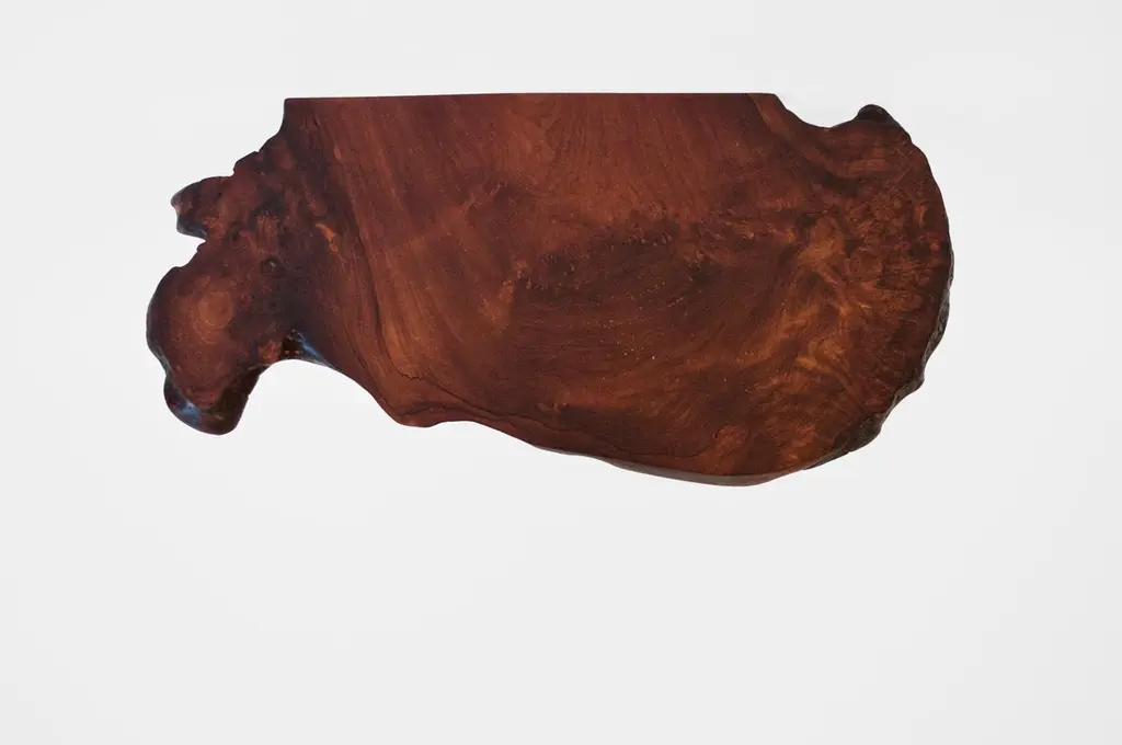 W2320 Wall Hanging Shelf in Honduras Rosewood Burl Wood by Jörg PietschmannDimensions: D 35 x W 69 x H 2,5 cm.Materials: Honduras rosewood burl.All wall shelves include steel pin holders for discreet mounting. Please contact us.In Pietschmann’s sculptures, trees that for centuries were part of a landscape and founded in primordial forces tell stories inscribed in the memory of their fibers.The forms Jörg Pietschmann pares from ancient trees are extensive and astonish with their physical presence, a combination of elegance and primeval nature. Pietschmann’s sculptures are monuments to the trees from which they derive.Being endowed with the ruggedness of primeval matter gives them a veritable vitality: figures that appear to have grown into their sculptural form of their own accord. But Pietschmann’s tangibly present bodies have undergone a considerable degree of metamorphosis.In order to generate these unique tree specimens he examines the tree’s morphology and intrinsic inner map until the courses of its grain, of a curve, knots and cracks concur with his projections. The exploratory process is accompanied by constant modification, giving at the start of each new piece no more than an intimation of the figure that will later emerge. In their completion, Pietschmann’s sculptures once more become universal form.Jörg Pietschmann`s workshop is situated on the countryside close to Hamburg. He works with indigenous timber as oak, lime tree, beech, poplar, olive tree and maple felled by the wind or human hand, together with tropical timber found on his travels.