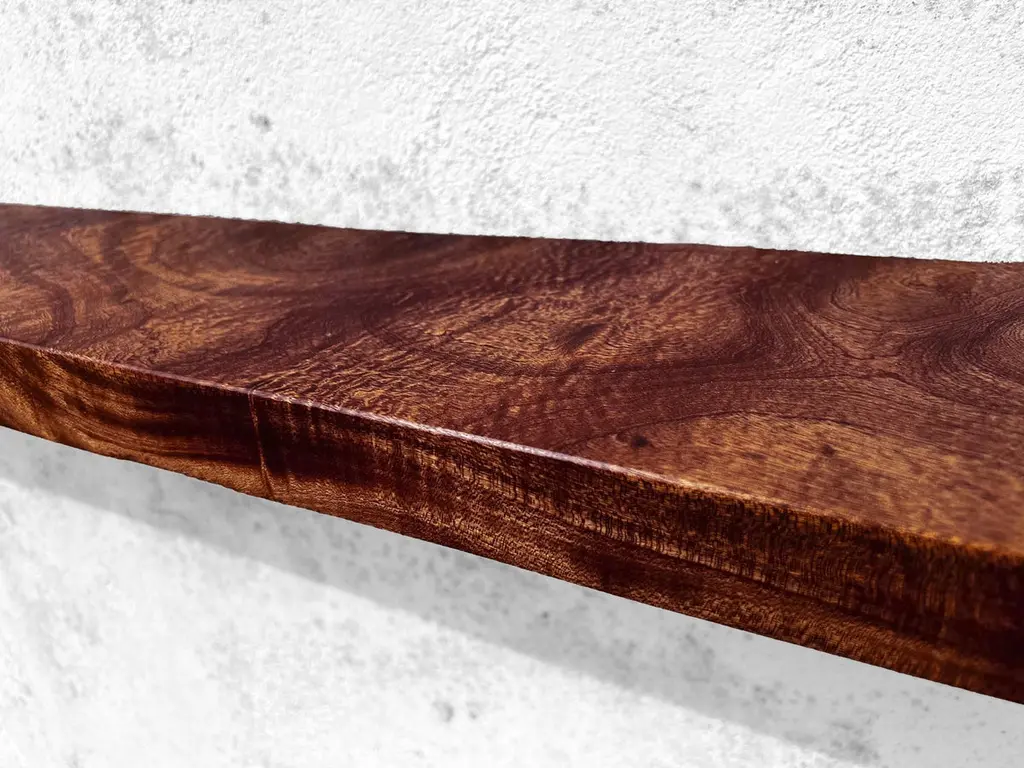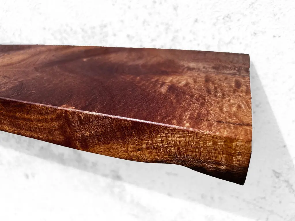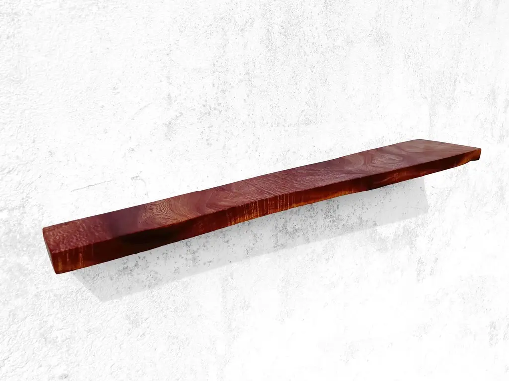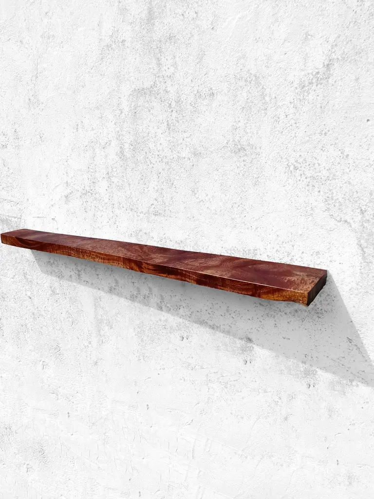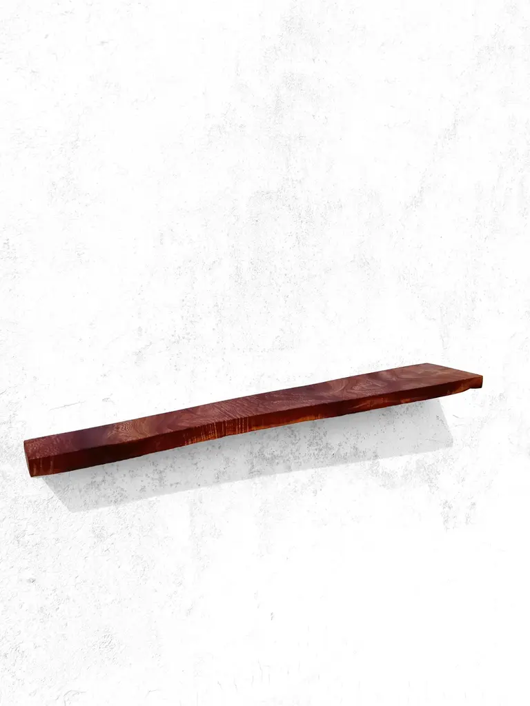 W2423 Wall Hanging Shelf in Teak Wood by Jörg PietschmannDimensions: D 22,5 x W 125 x H 4,5 cm.Materials: Teak wood.All wall shelves include steel pin holders for discreet mounting. Please contact us.In Pietschmann’s sculptures, trees that for centuries were part of a landscape and founded in primordial forces tell stories inscribed in the memory of their fibers.The forms Jörg Pietschmann pares from ancient trees are extensive and astonish with their physical presence, a combination of elegance and primeval nature. Pietschmann’s sculptures are monuments to the trees from which they derive.Being endowed with the ruggedness of primeval matter gives them a veritable vitality: figures that appear to have grown into their sculptural form of their own accord. But Pietschmann’s tangibly present bodies have undergone a considerable degree of metamorphosis.In order to generate these unique tree specimens he examines the tree’s morphology and intrinsic inner map until the courses of its grain, of a curve, knots and cracks concur with his projections. The exploratory process is accompanied by constant modification, giving at the start of each new piece no more than an intimation of the figure that will later emerge. In their completion, Pietschmann’s sculptures once more become universal form.Jörg Pietschmann`s workshop is situated on the countryside close to Hamburg. He works with indigenous timber as oak, lime tree, beech, poplar, olive tree and maple felled by the wind or human hand, together with tropical timber found on his travels.