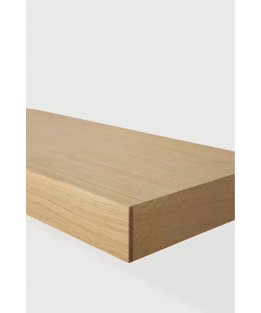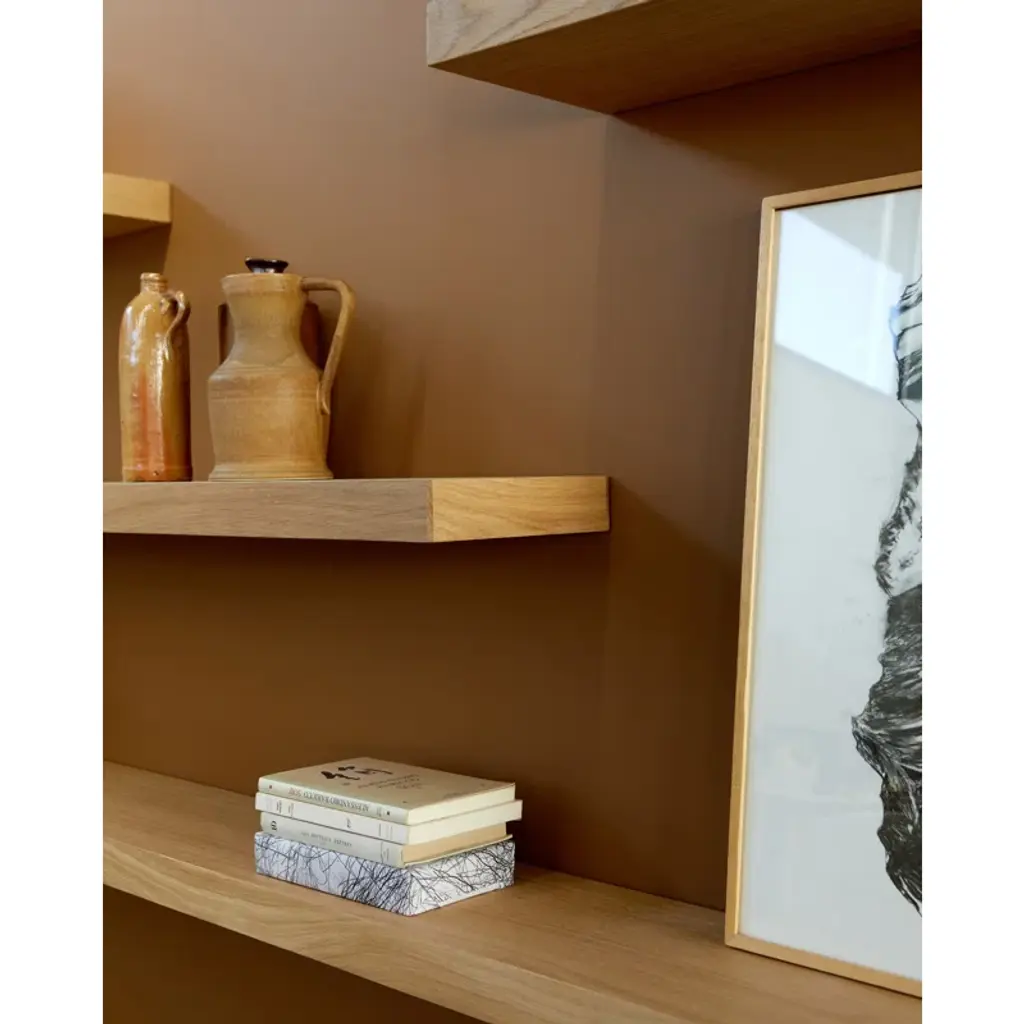 This elegant wall shelf, crafted from European oak, is the perfect solution for extra shelving needs. Featuring simple, clean lines, we can be aligned or stacked on the wall in your preferred combinations. Comes with a flush-mounted stainless steel keyhole bracket for easy installation.