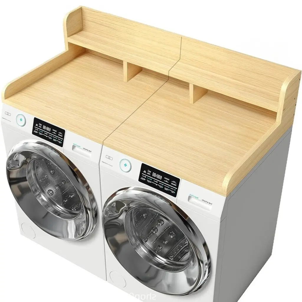 Description: Name: Washer Dryer Countertop Main Material: MDF Turn your laundry room into a functional space with this washer dryer countertop. Measuring 54 inches long, 27.5 inches wide and 12 inches high, and with an extra divider compared to other laundry countertops, our washer and dryer countertop not only provides superb storage capacity for detergents, fabric softener essentials, but the spacious countertop is perfect for sorting and organizing clothes. Whether you're folding, sorting or organizing, this washer dryer topper ensures a seamless, tidy experience that greatly simplifies your laundry routine. Packing list: 1 x Washer Dryer Countertop