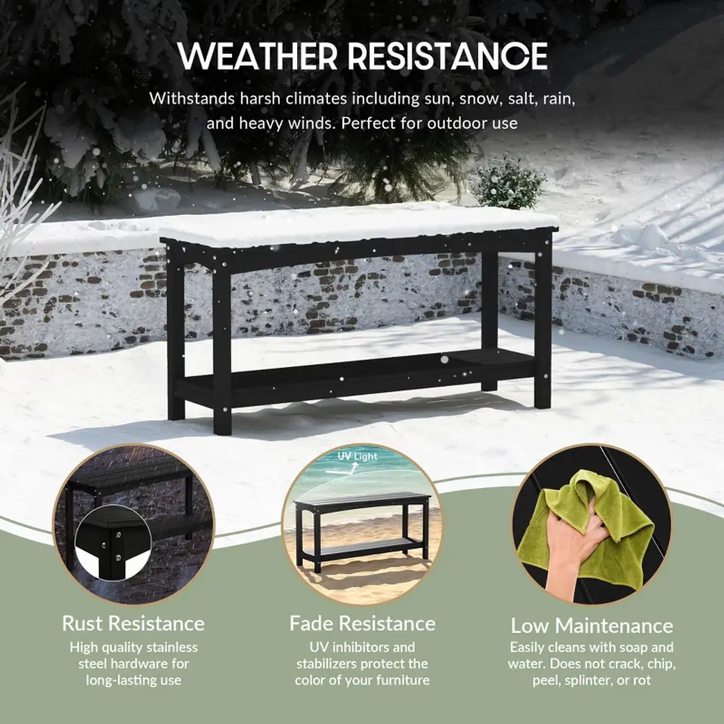 Westintrends Malibu 55" All Weather Hdpe Outdoor Patio Two Shelf Table, Black