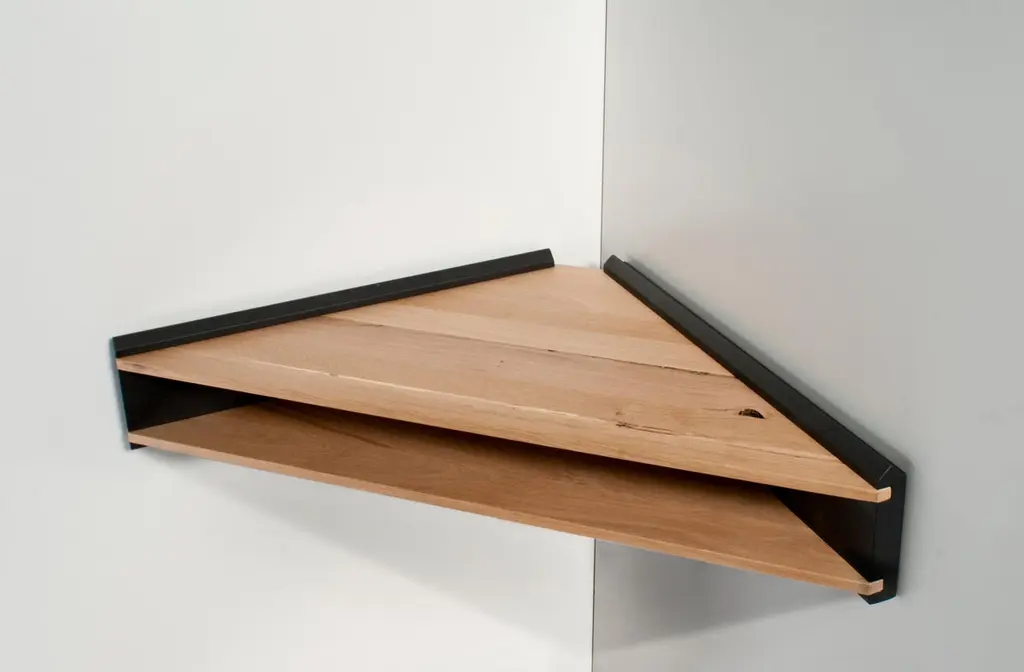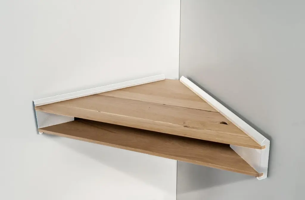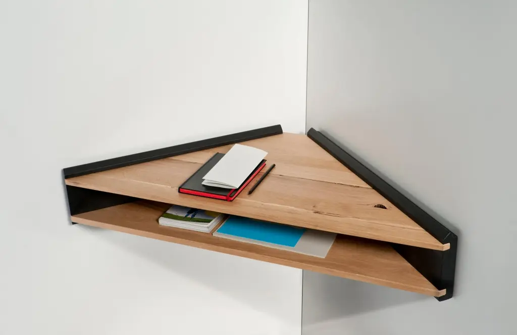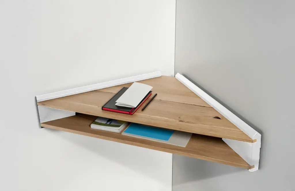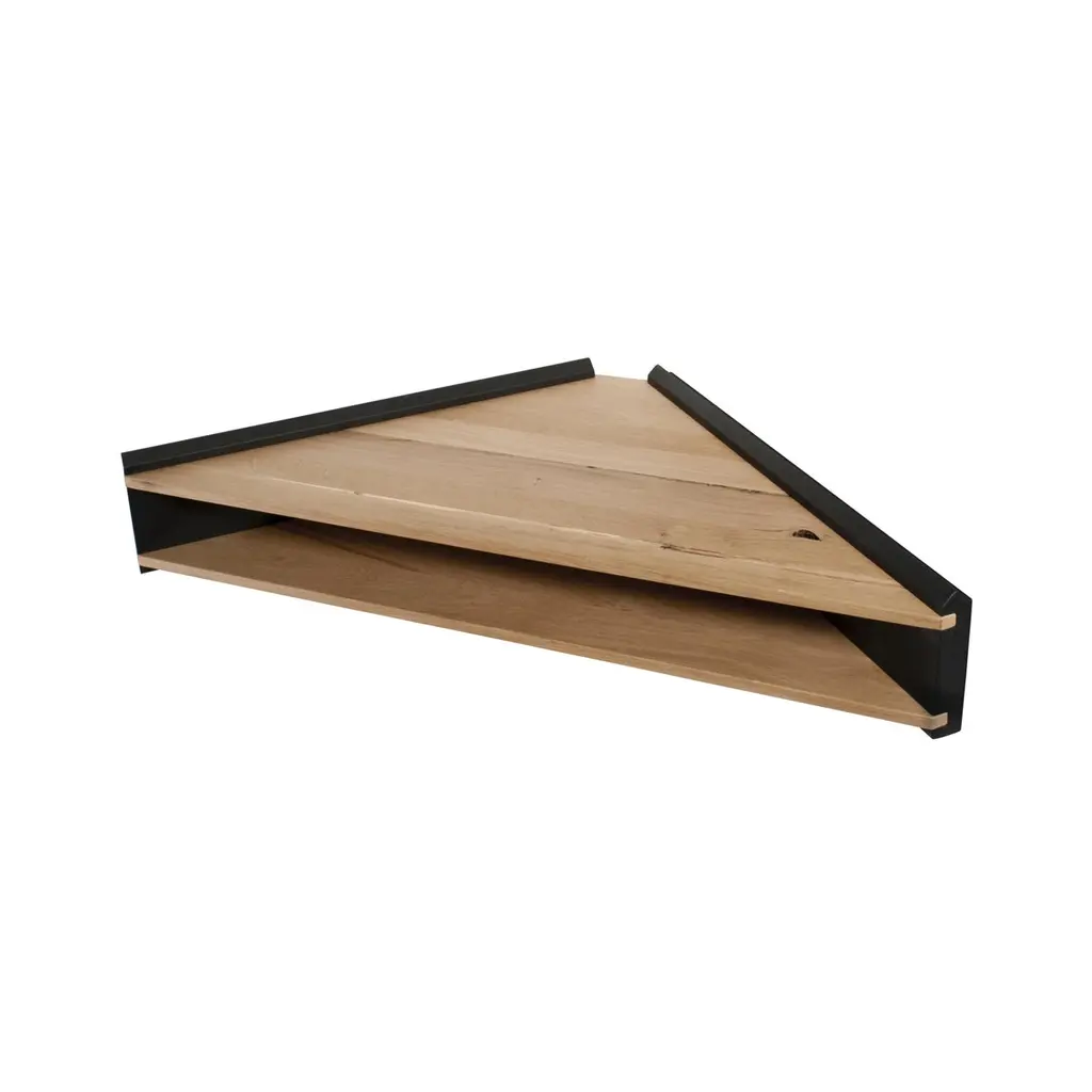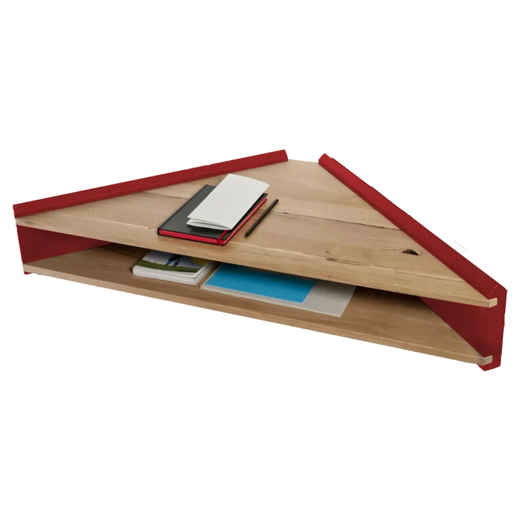 White Briccola-ge shelf by Colé Italia with Miki AstoriDimensions: H.25; D.47 W.100Materials: Wall angular hanged writing desk; wall lacquered supports in wood pulp. 2 solid oak shelves with antique style wood insertsAlso available: Red, black, and white wall supports.“The corner is a piece of home mistreated. A dead end with no way out. In every reality, in every culture, thecorner is never dutifully considered”. So, between the serious and the facetious, Miki Astori explains the project ofBriccola-ge, a two-story practical and poetic work plan or small console where to operate in transitory moments…The supports are in a mass-colored technical material. The tops are made of solid oak strips with inserts of antinqueBriccola Veneziana. At the corner, there is a small bevel to allow the passage of the electric charging cables.Colé is a young Italian design brand, with a high-end production 100% made in Italy. Born from the experience of Matteo De Ponti, architect, who grew up in one of the most outstanding Milanese design families, and the artistic sensibility of Laura Macagno, degree in Economics and passionate of art and design. Our Mission is to create design icons, beautiful and comfortable pieces that can Stand the test of time, furnishing houses of international and sophisticated clients, and realized with craftsmanship, thus unique. “We love objects which own deep roots, excellent quality, and a strong evocative power. Archetypal forms dressed with new beauty without losing their classical composure”.Our expressive research is inspired by the utopian force of Italian eminences grises architects and designers of the ’50s, the Scandinavian design, the Bauhaus, ethnic handcraft and houses of famous writers of the XX century, all different as a style but united by the intense soul of those who worked and lived there.