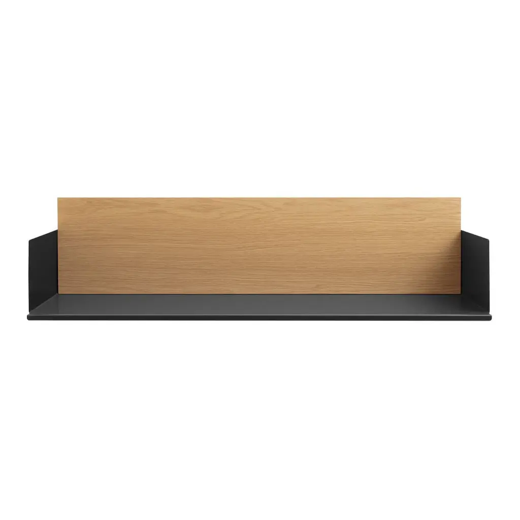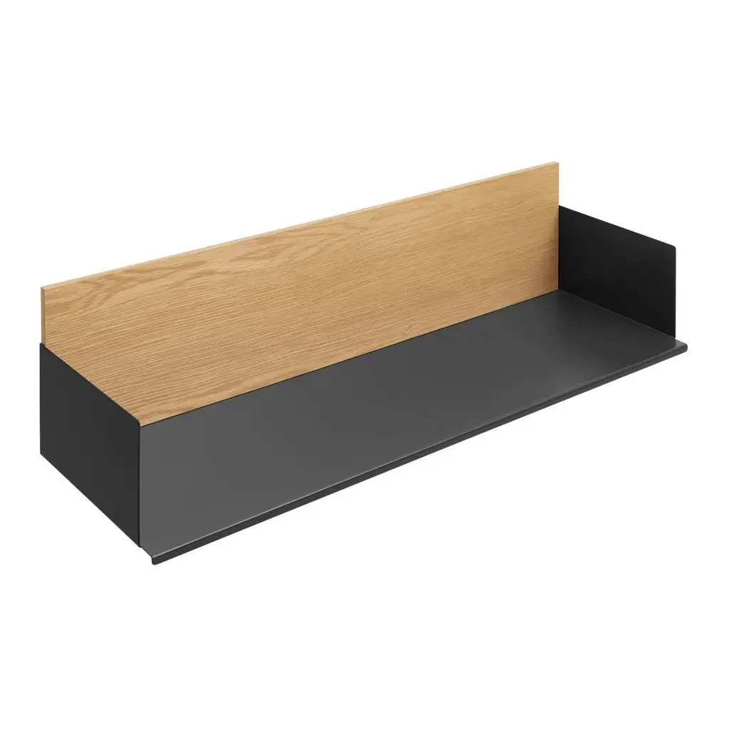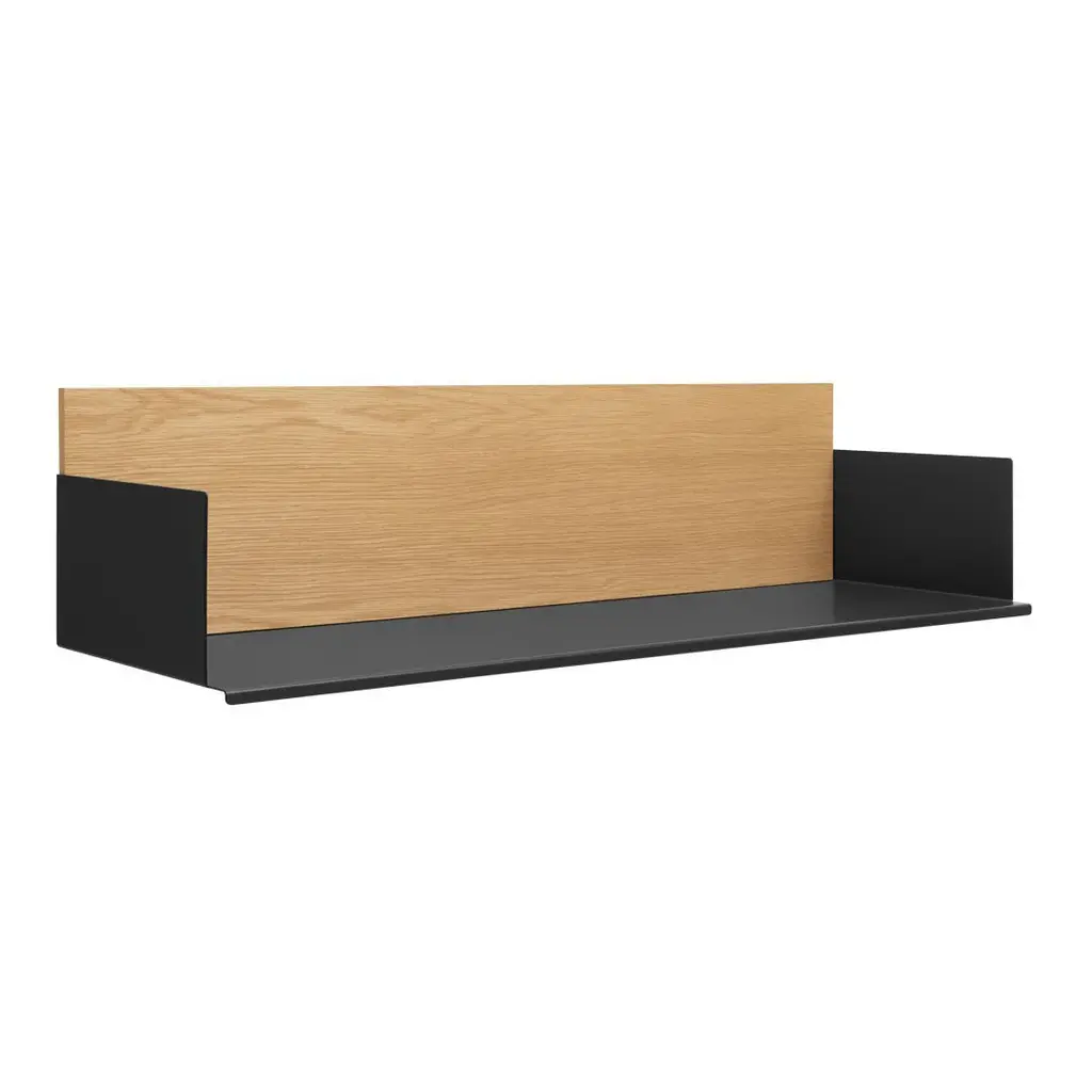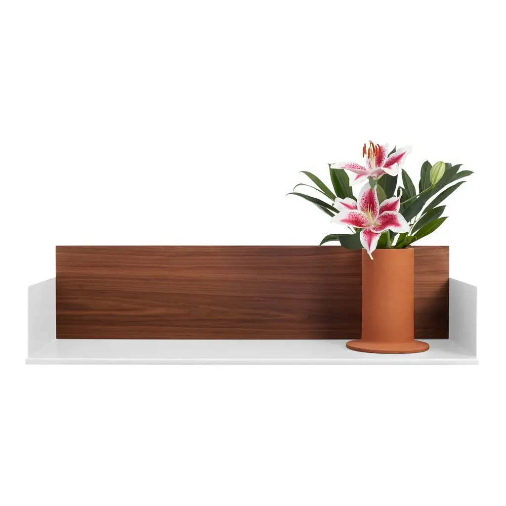 Wall-mounted powder-coated steel shelf with a walnut back panel turns any wall into an opportunity. Pair with companion cabinet and desk units to create a full-on storage masterpiece.
