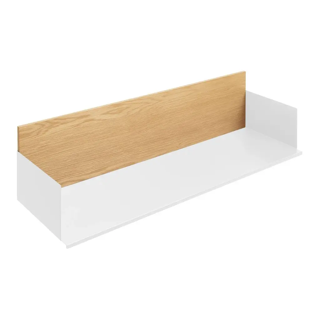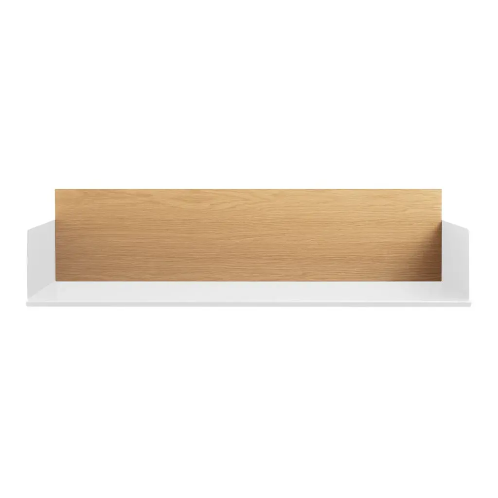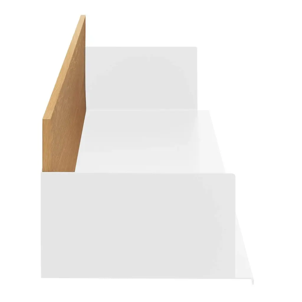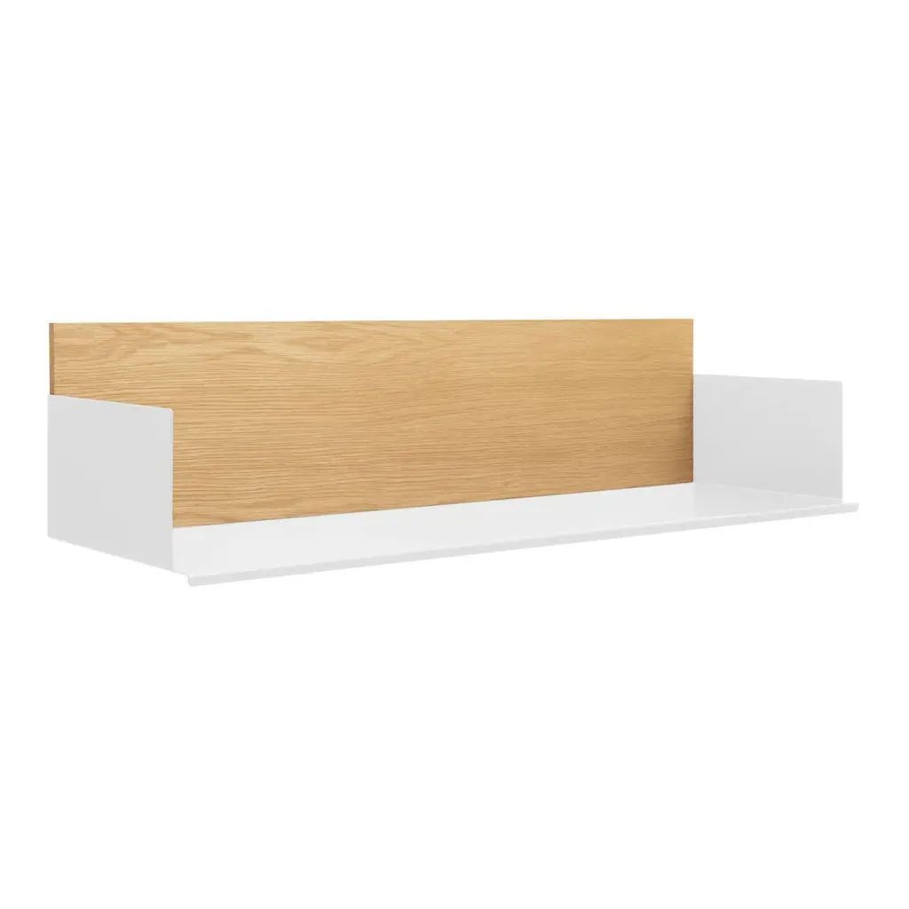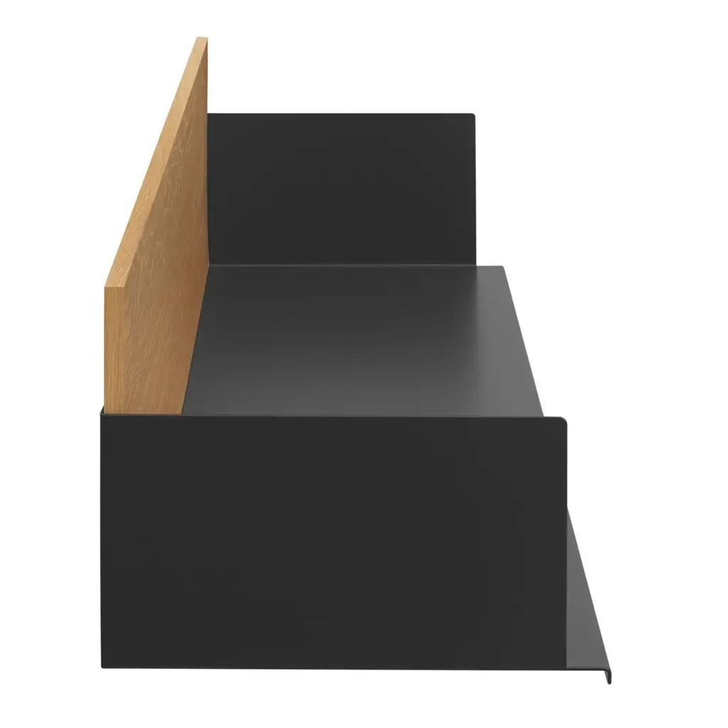 Wall-mounted powder-coated steel shelf with a walnut back panel turns any wall into an opportunity. Pair with companion cabinet and desk units to create a full-on storage masterpiece.
