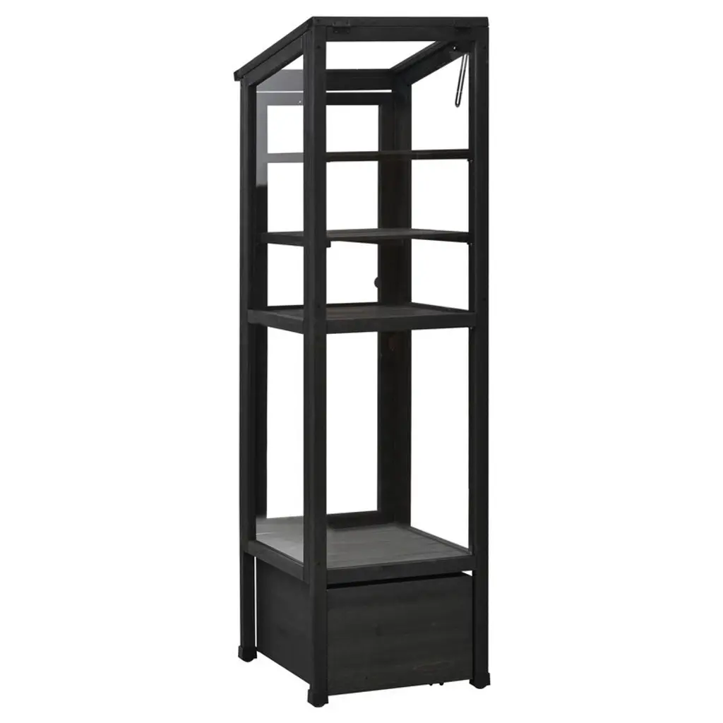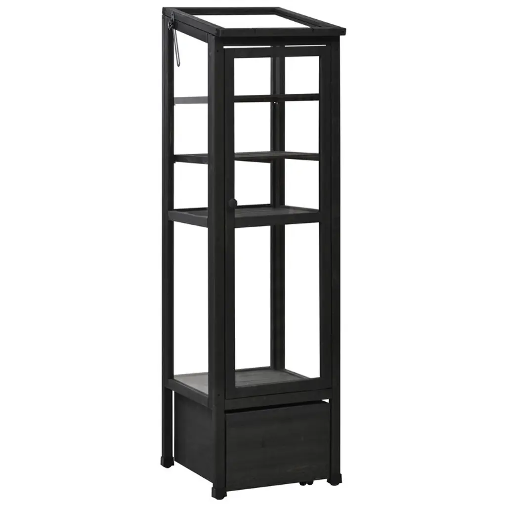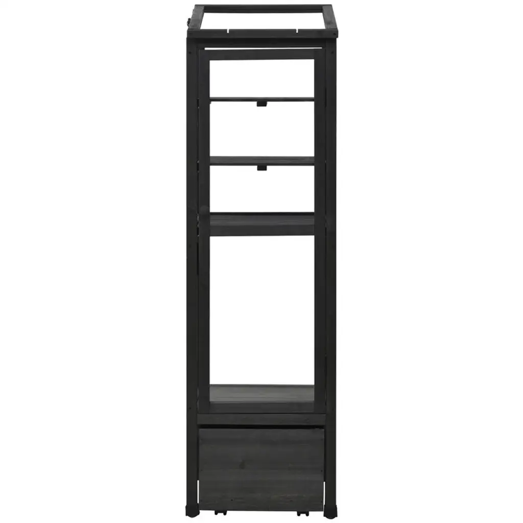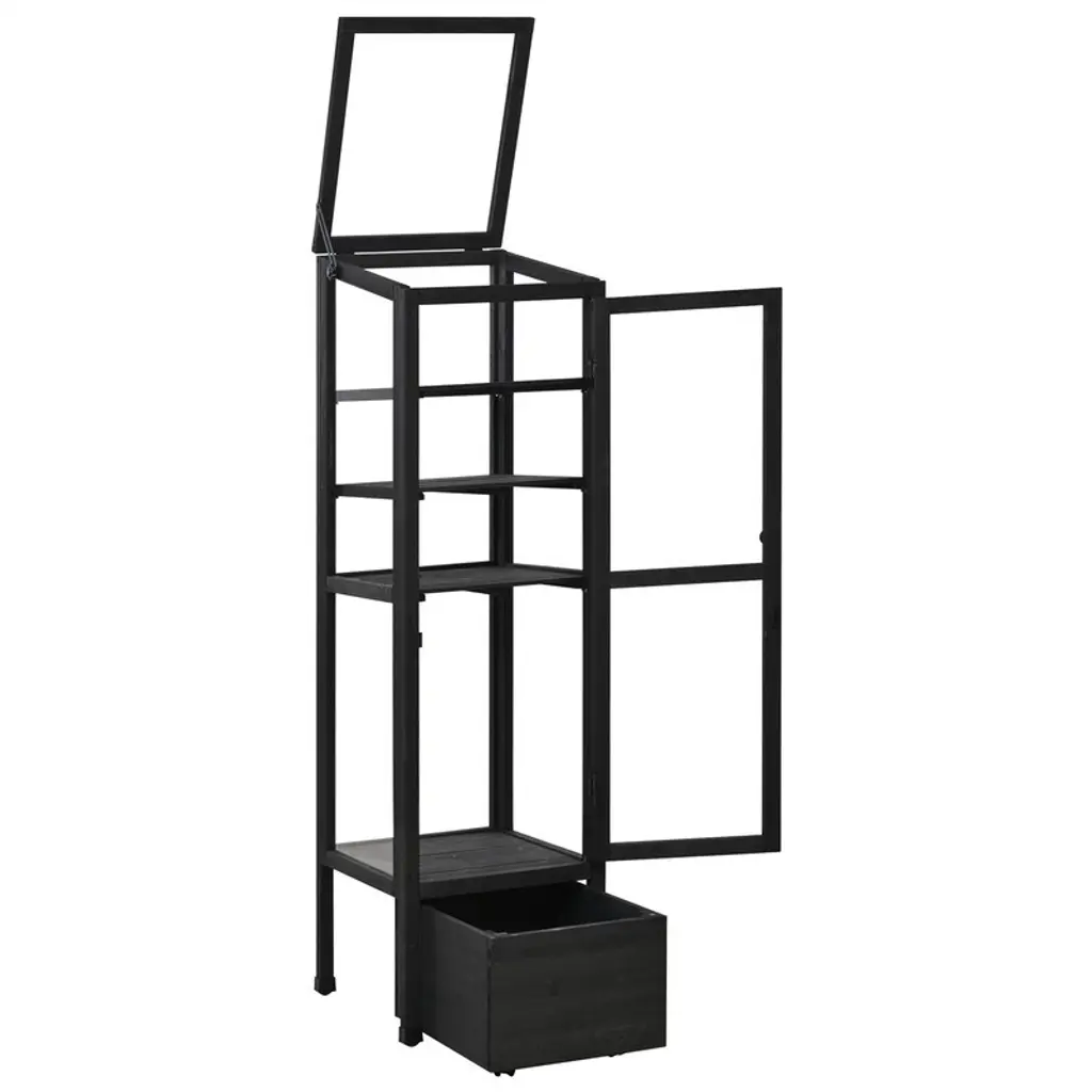 Wood Garden Greenhouse, Cold Frame Raised Flower Planter Shelf With Movable Storage Box And Adjustable Shelves - Black