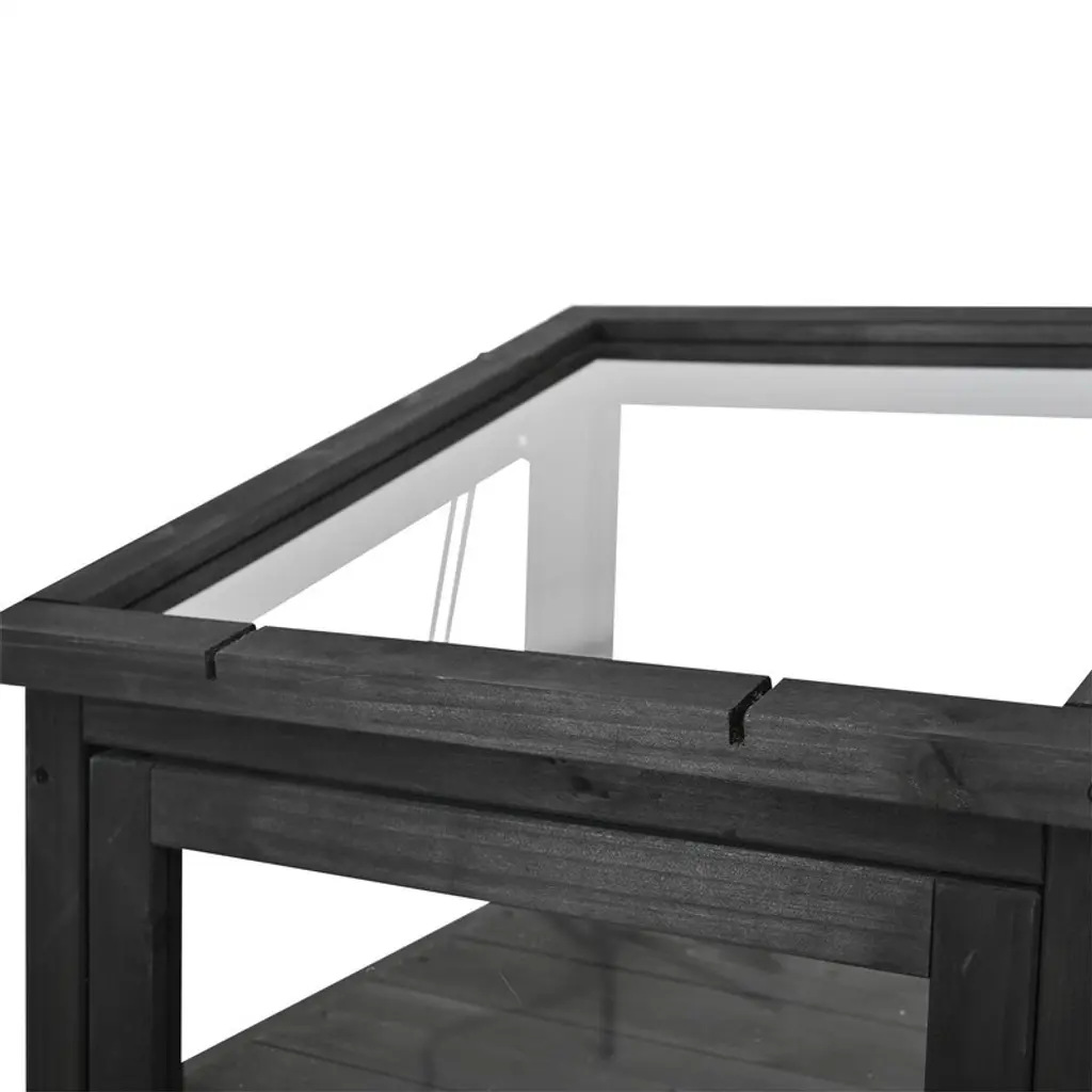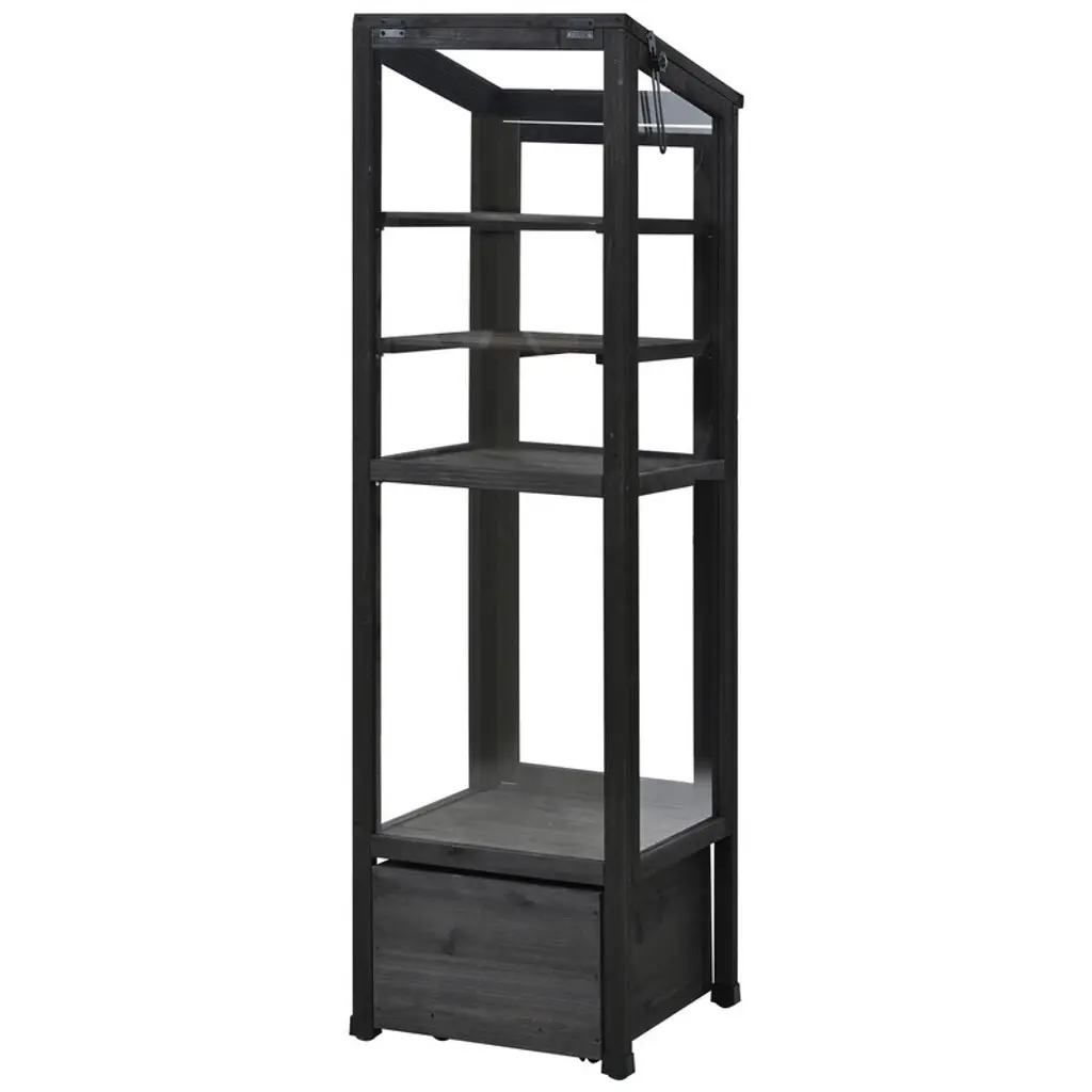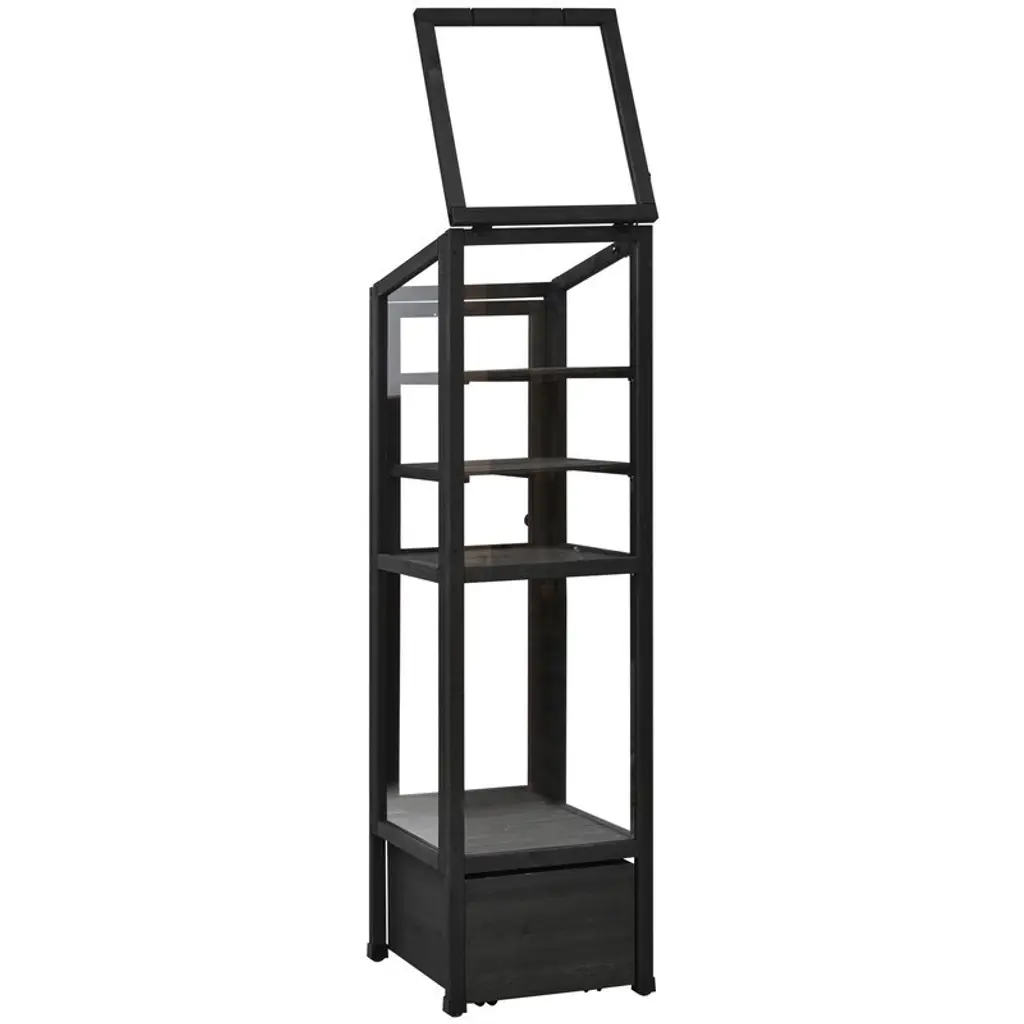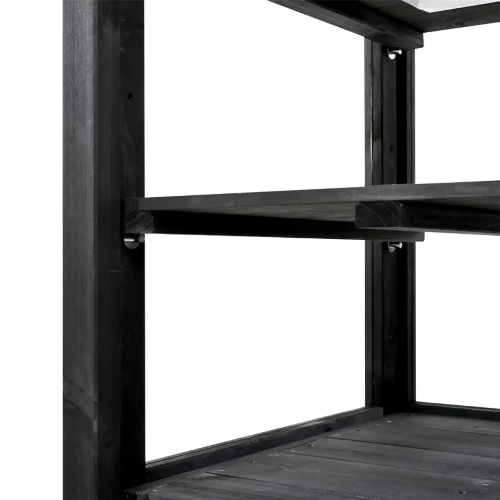 Wood Garden Greenhouse, Cold Frame Raised Flower Planter Shelf With Movable Storage Box And Adjustable Shelves - Black