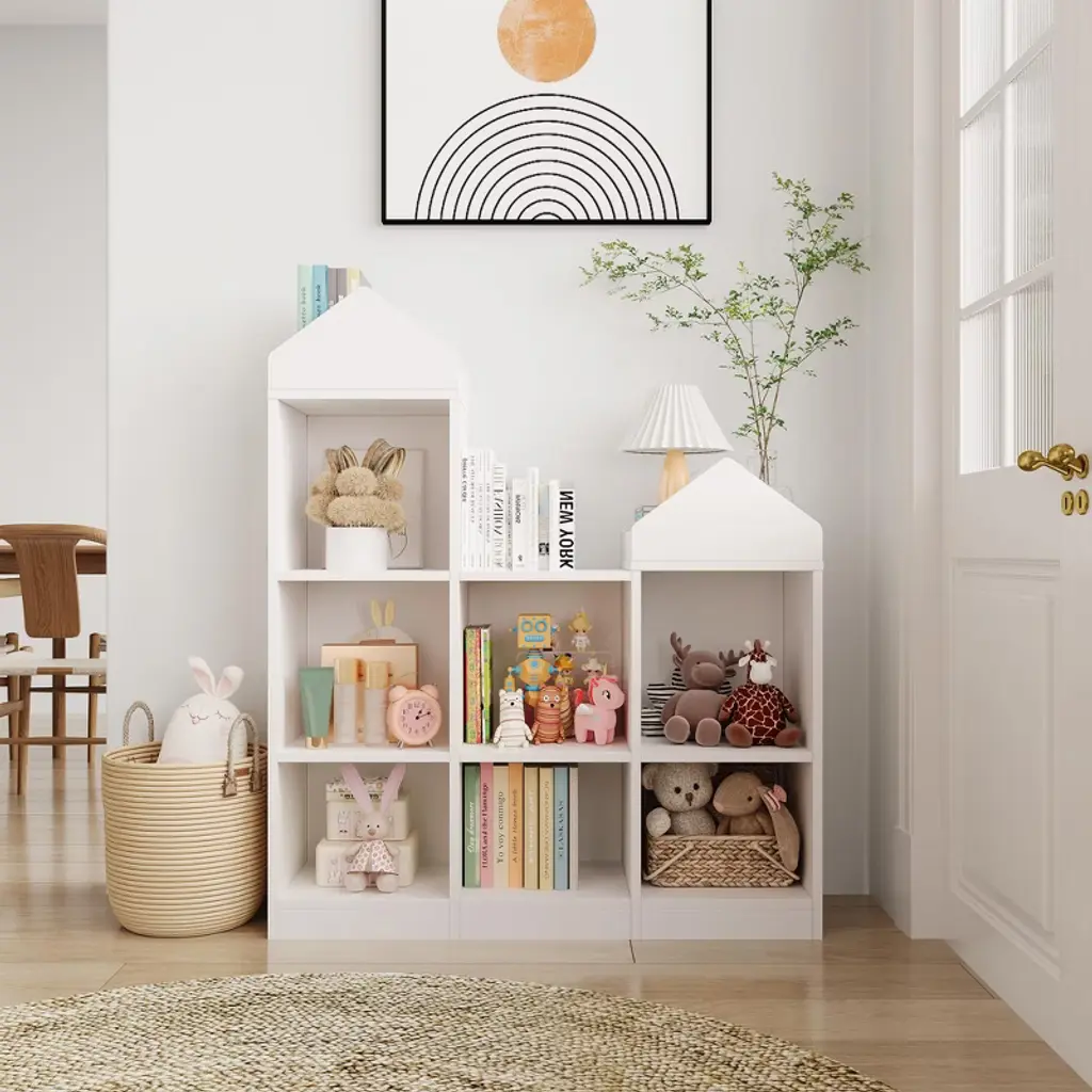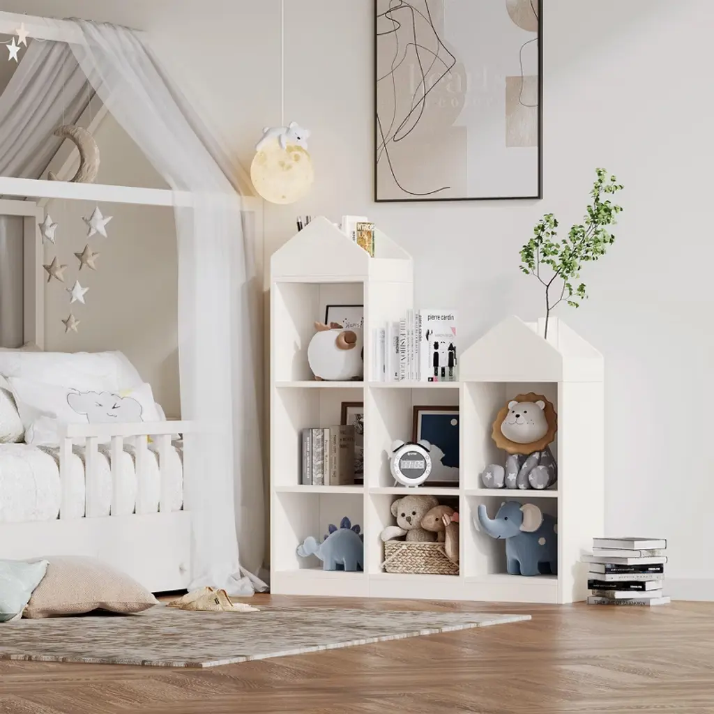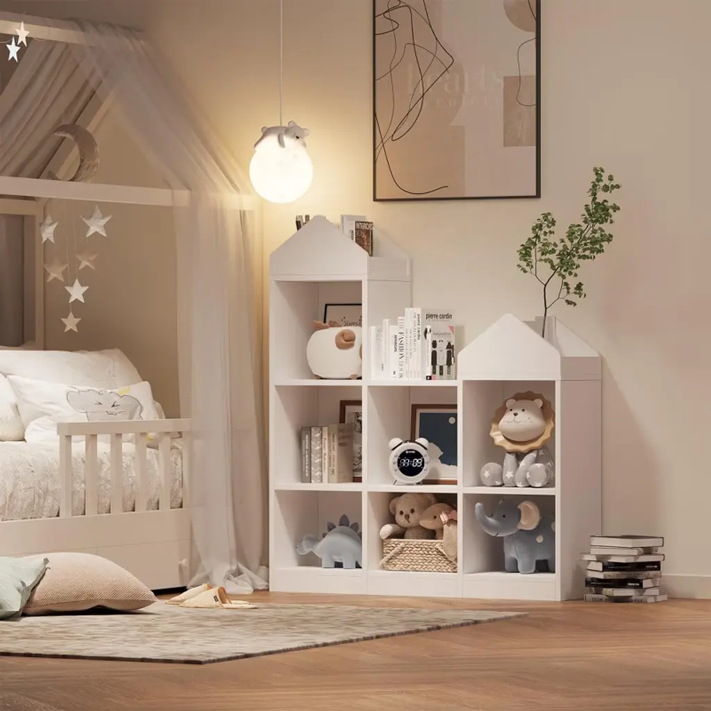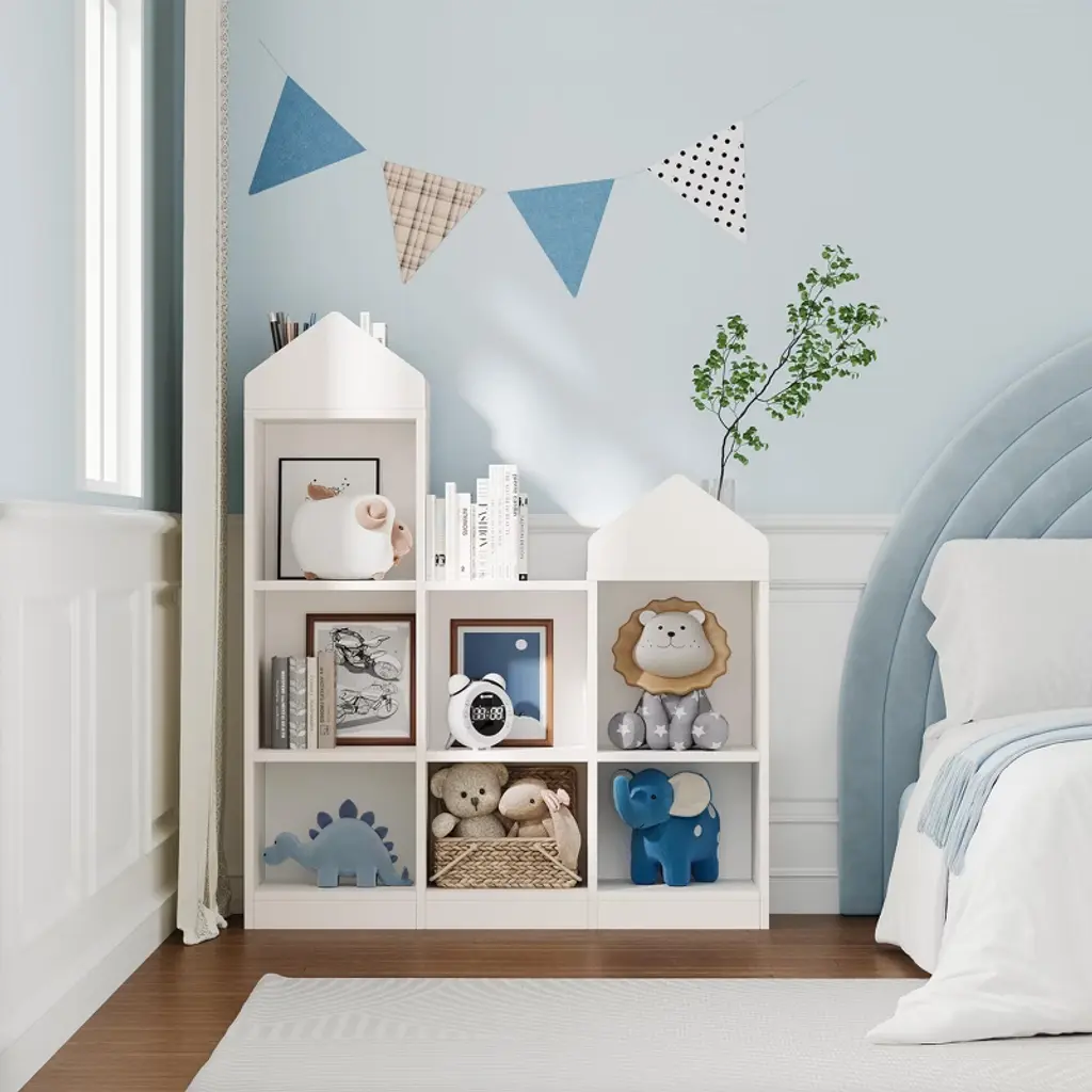 Wooden Shelf for Kids, White Bookcase, 7 Cubes for Boys and Girls, Storage for Playroom, Nursery Baby Room