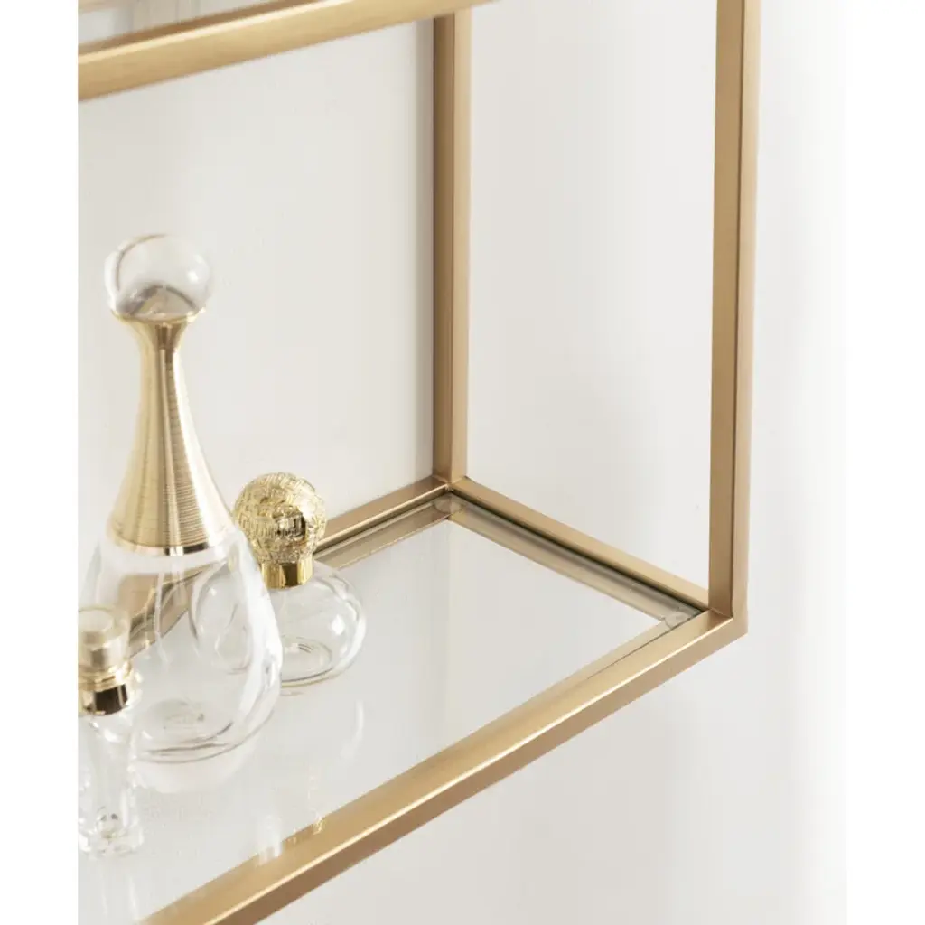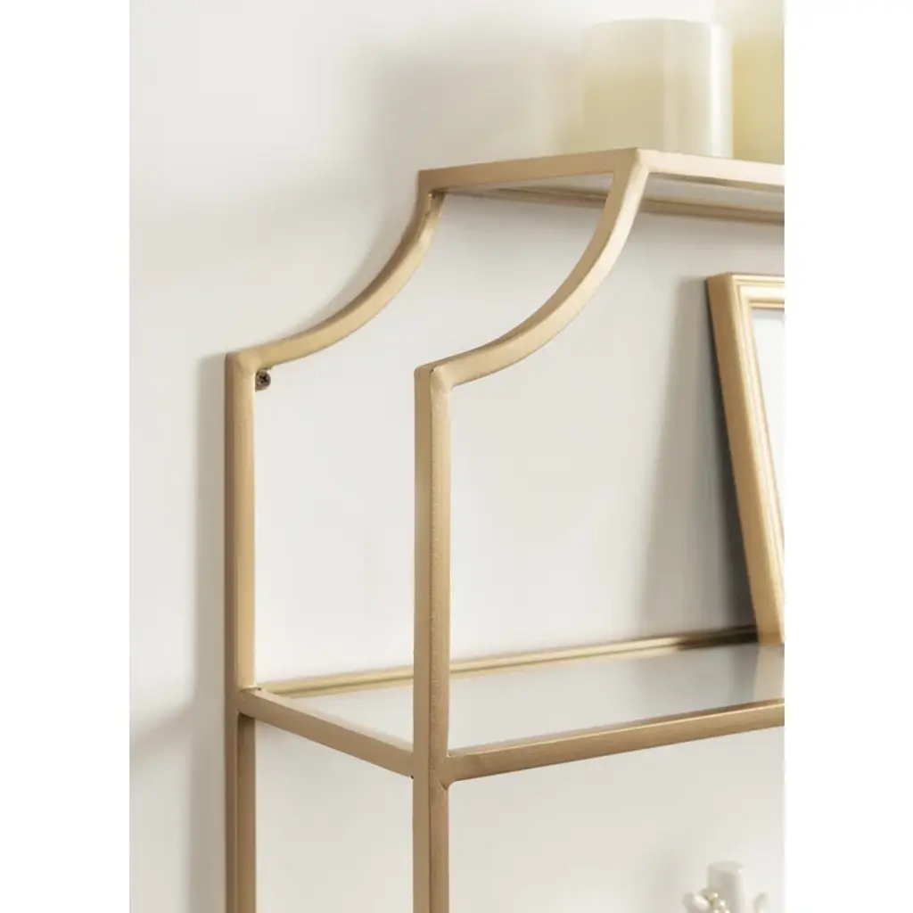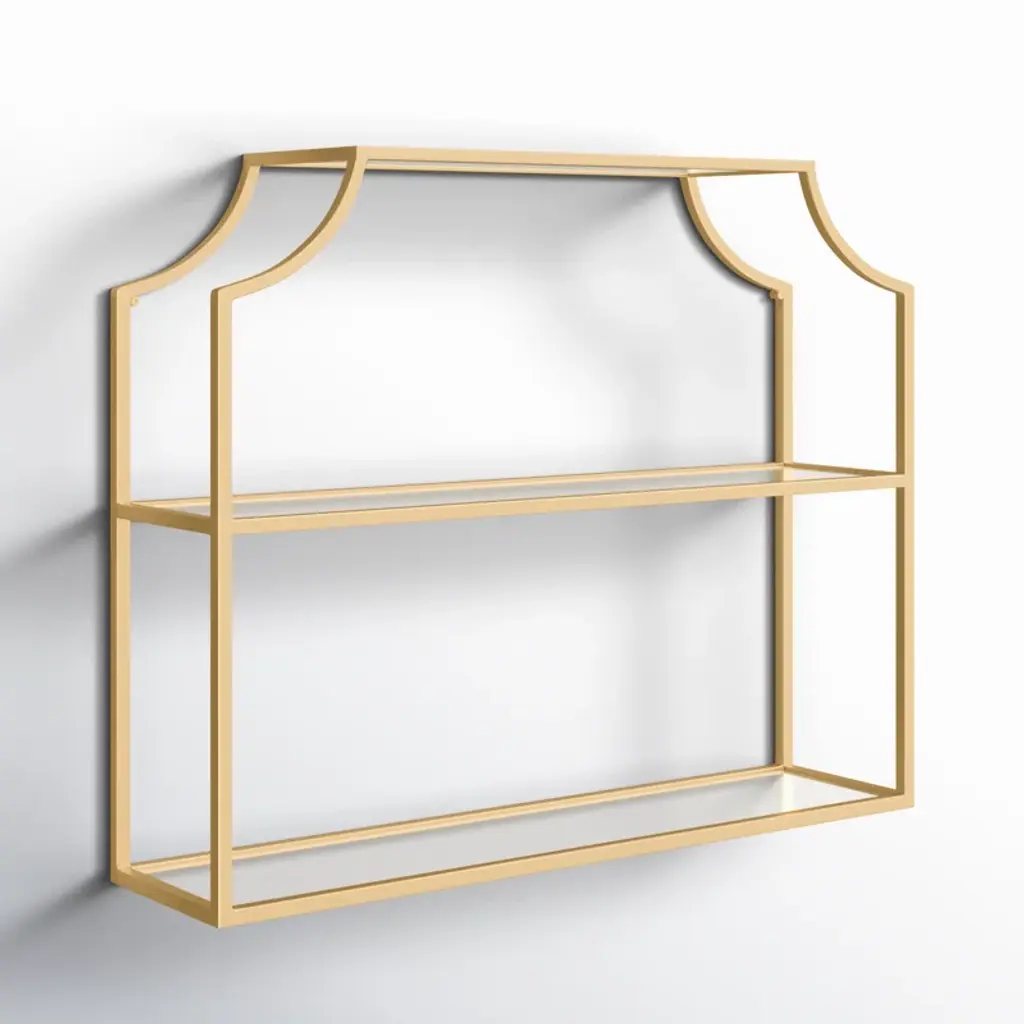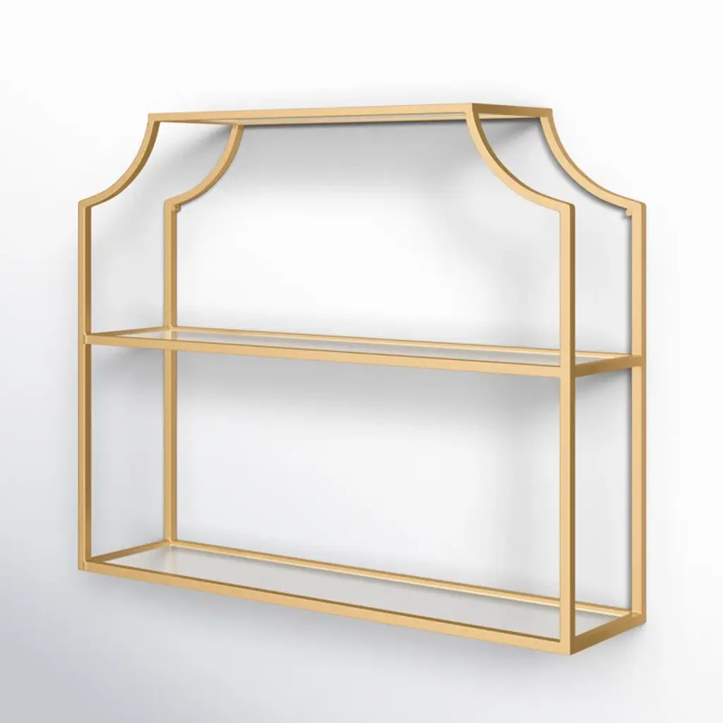 A wall shelf doesn't have to be only for storage anymore! Now your space-saving storage solutions can be a dazzling and show-stopping wall display. That's what makes the wall shelf so perfect! It features four tiers of lovely and resilient glass shelves within a beautiful scalloped metal frame, creating a jaw-dropping display and storage solution for all your favorite keepsakes and household necessities. Its beautiful finish makes for a bold impression in any room of the home. The shelf makes it the perfect addition to any living room, bedroom, bathroom, entryway, or dining room. Each shelf has a 10 lbs. weight capacity and is 20 inches wide by 5.5 inches deep, with 9.5 inches of space separating each shelf for keepsakes, photos, bathroom necessities, plants, and other household necessities. Hang this beautiful scalloped wall shelf in only a matter of seconds with the convenient metal eyelet hangers securely attached to the back of the metal frame.