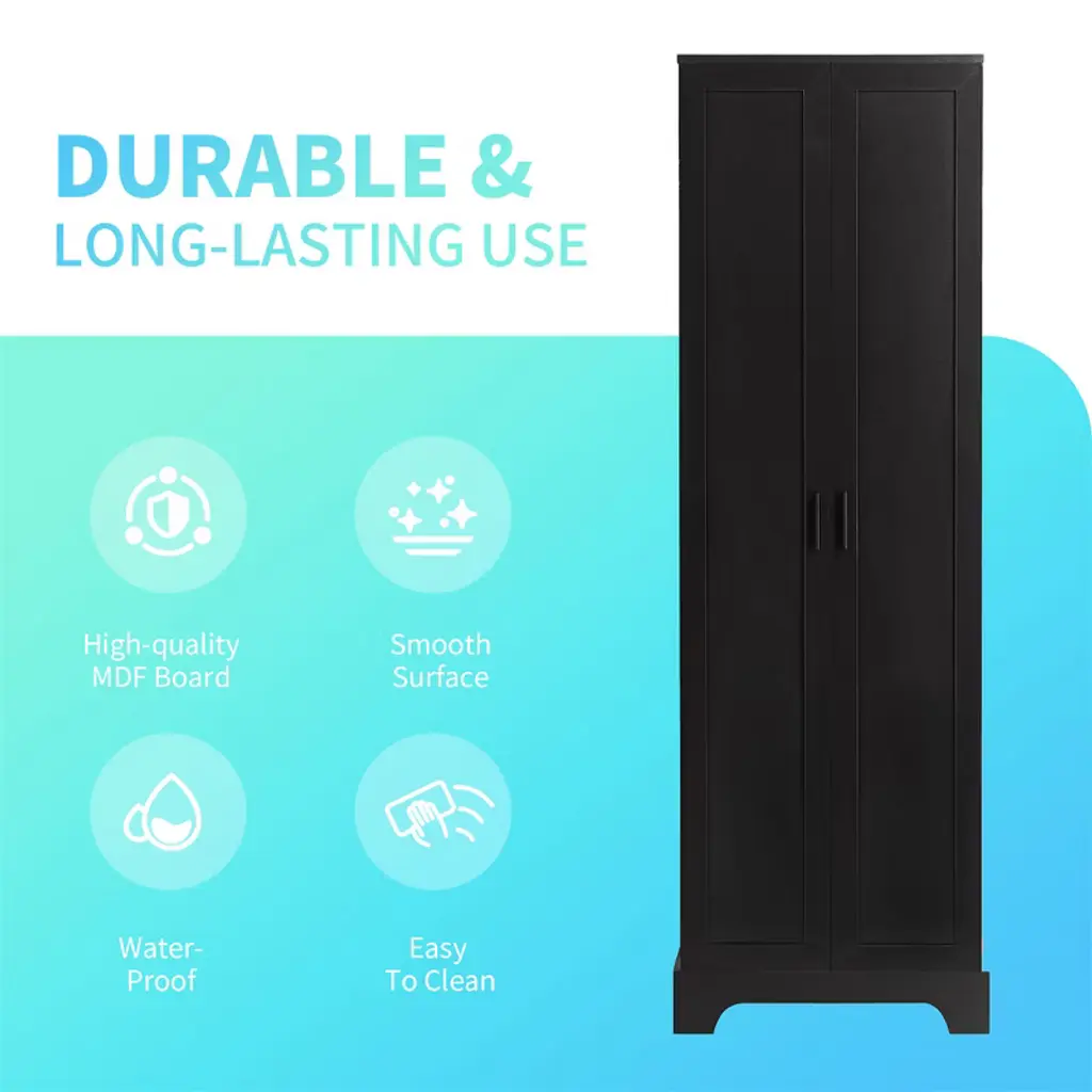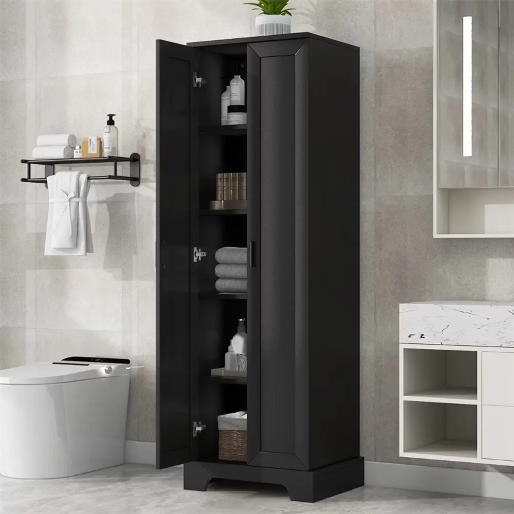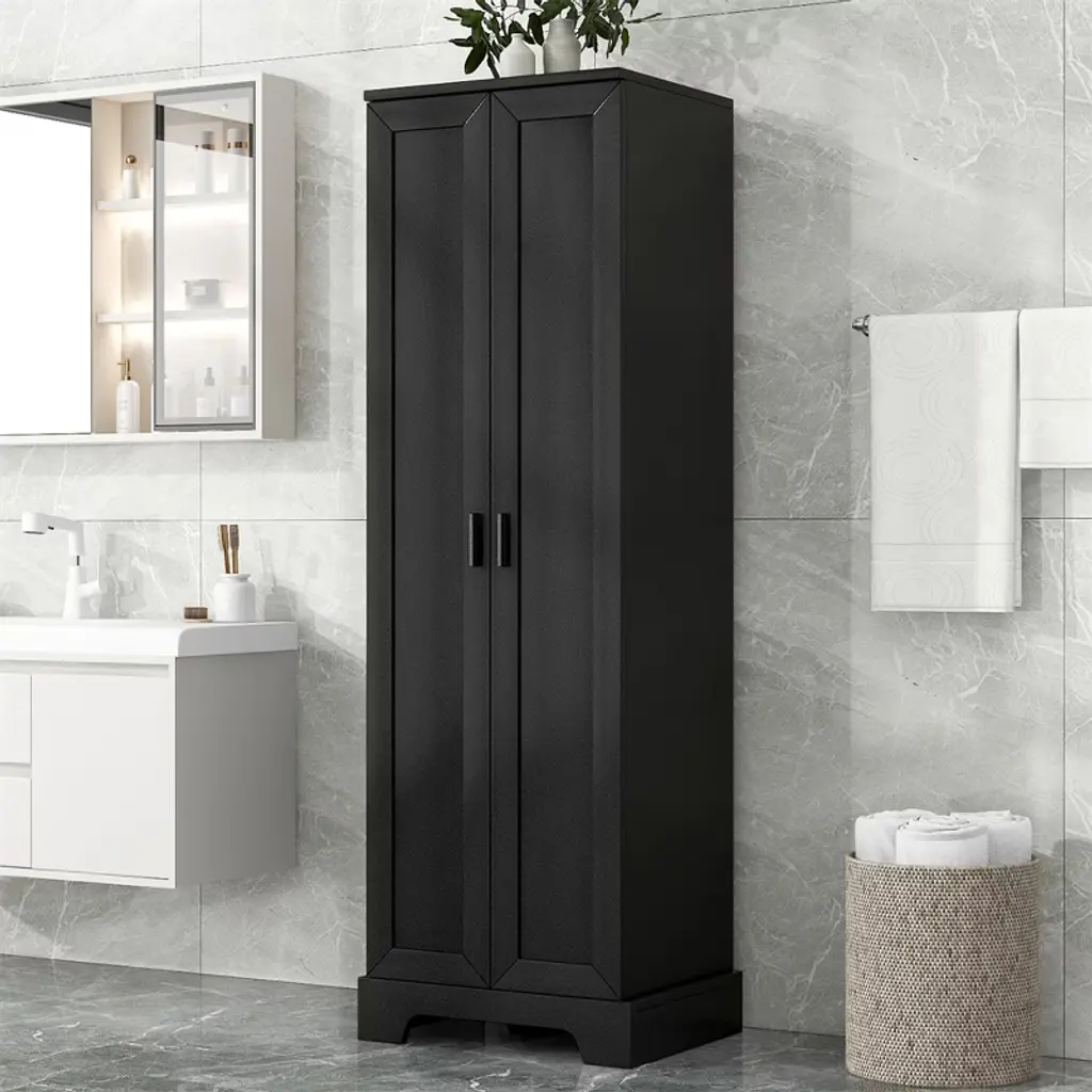 Xinghanzhenxuan Black Storage Cabinet With Two Doors For Bathroom, Office, Adjustable Shelf, Mdf Board
