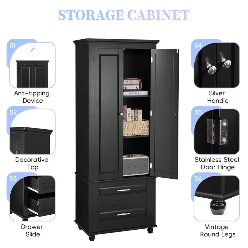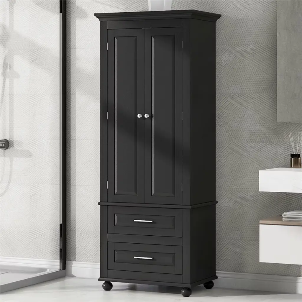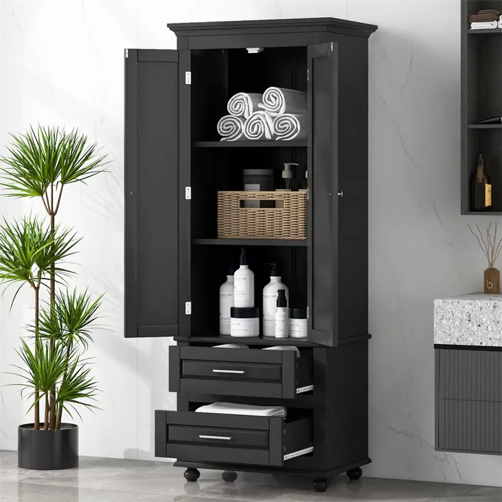Xinghanzhenxuan Black Tall 2-drawer Storage Cabinet For Bathroom & Office, Mdf Board, Adjustable Shelf & Anti-tip Kit